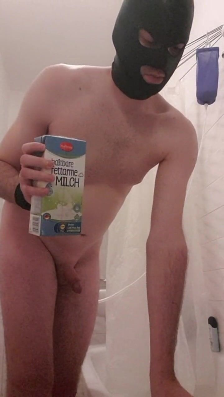 . Inexperienced boy gets a huge milk enema in his ass. The milk flows non-stop in and fills his belly until it is completely bloated