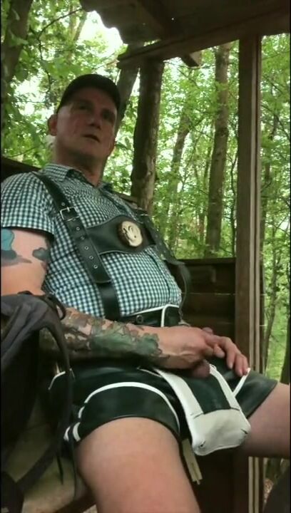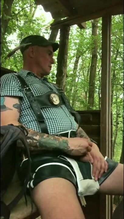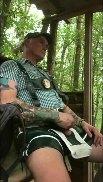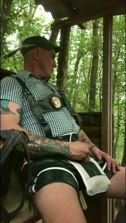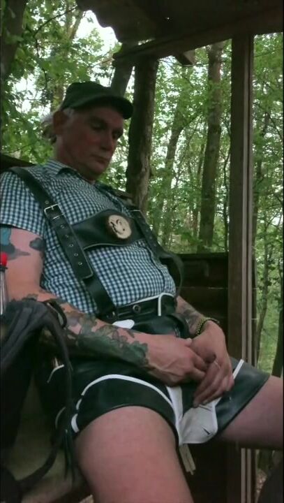 . KRACHBUA is wanking in the woods on his seat