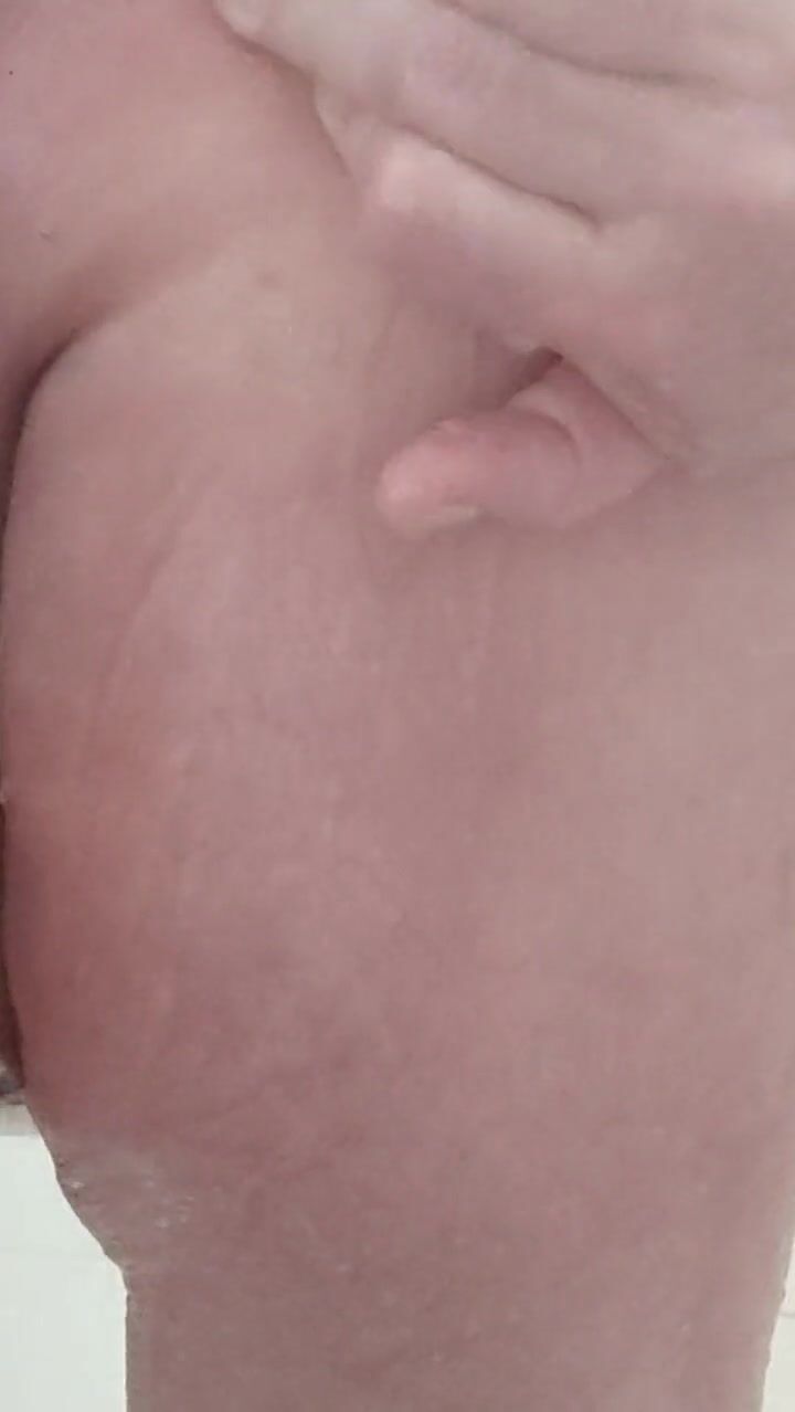 . Another shower game with pissing, washing balls and ass, playing with my little cock and fondling my tits and nipples in the shower