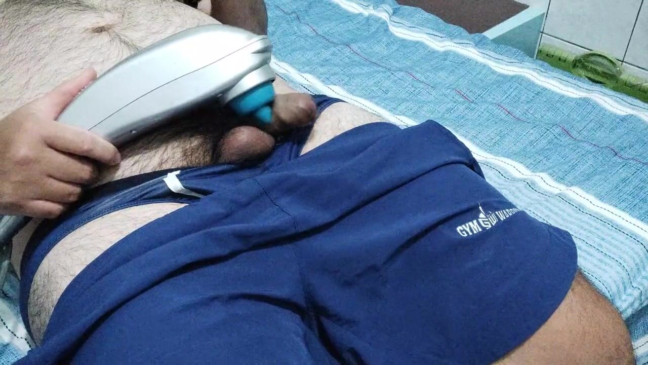 Big daddy bear play with dick pump and huge cumshot on his bear body !