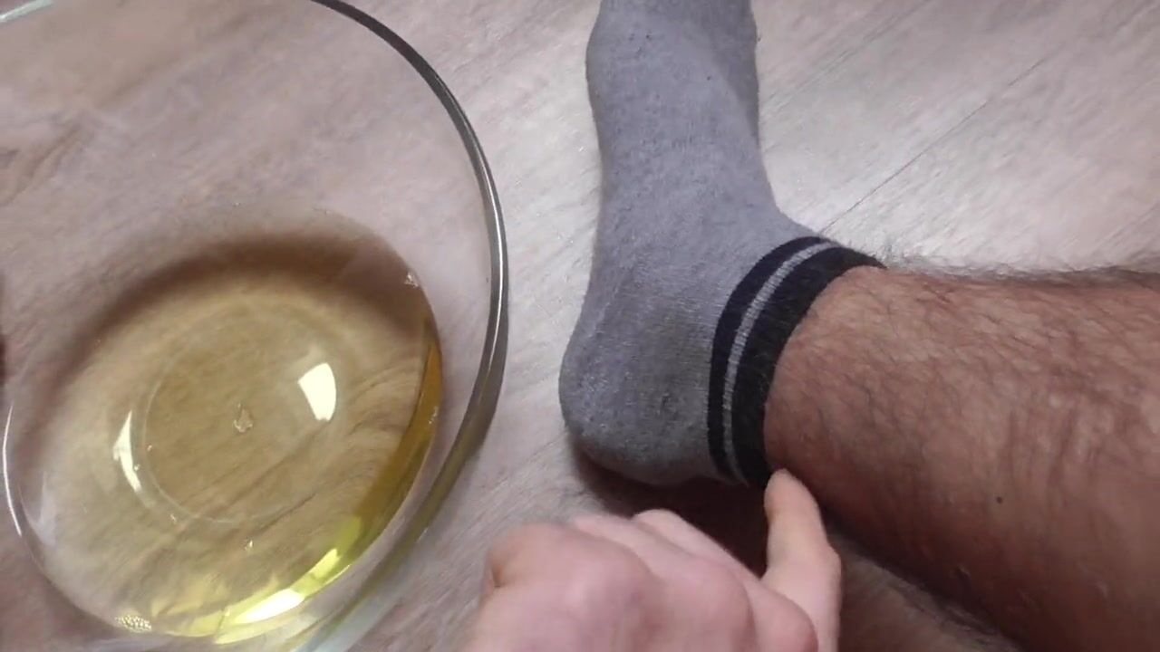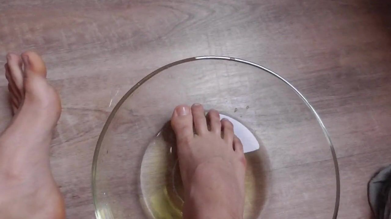 . Peeing in a bowl to clean my feet. Cum on them after cleaning