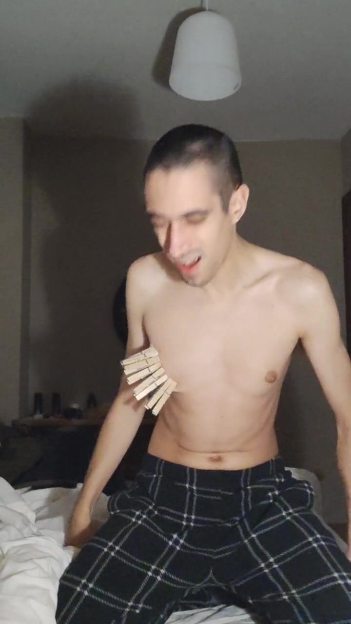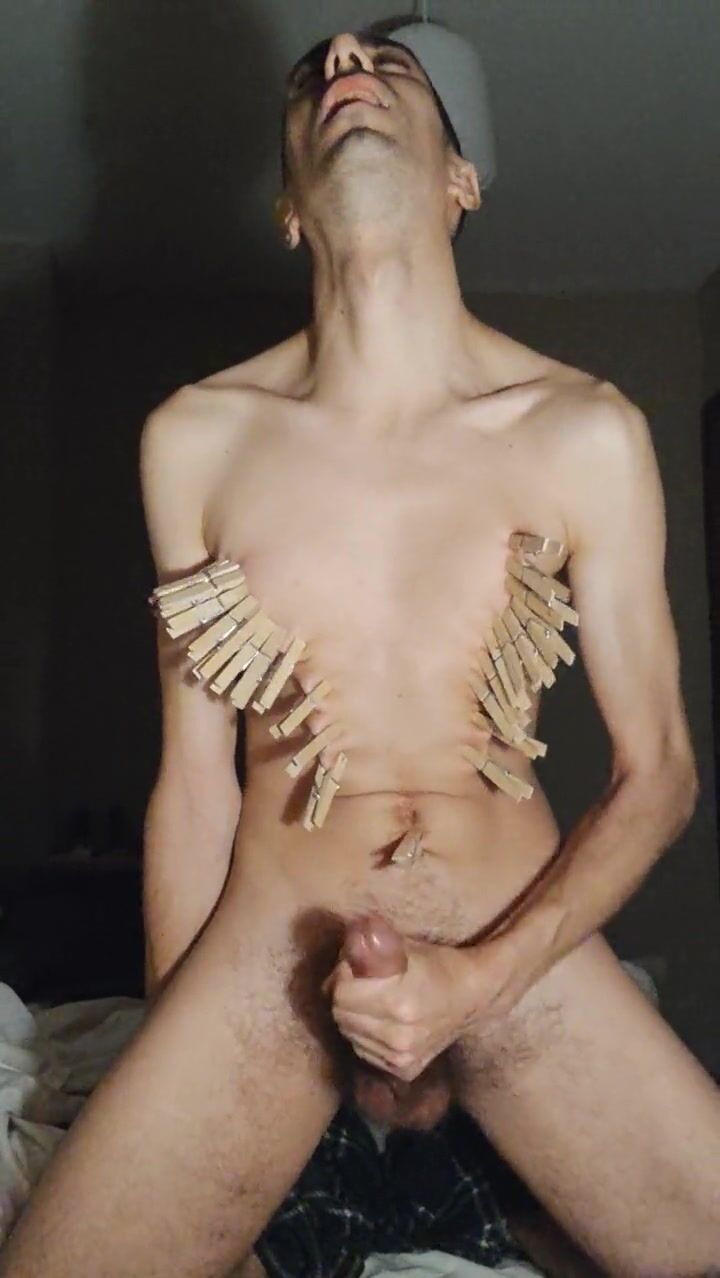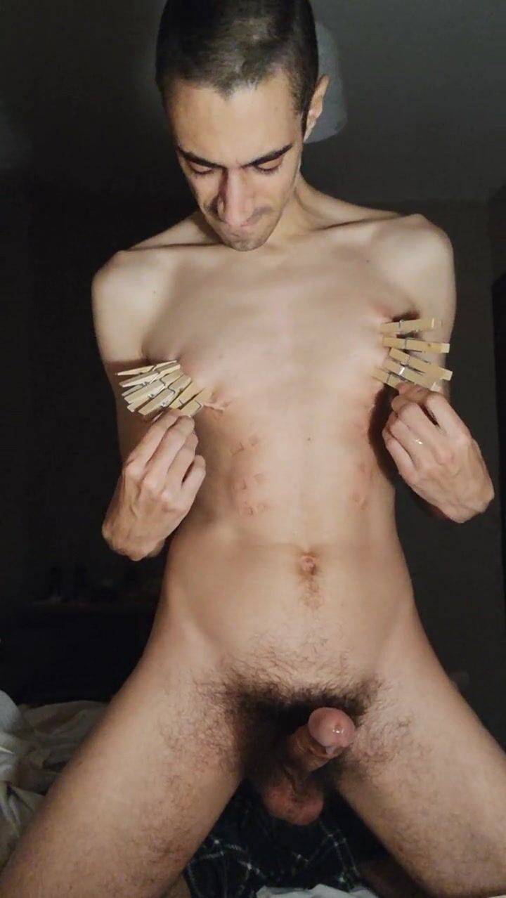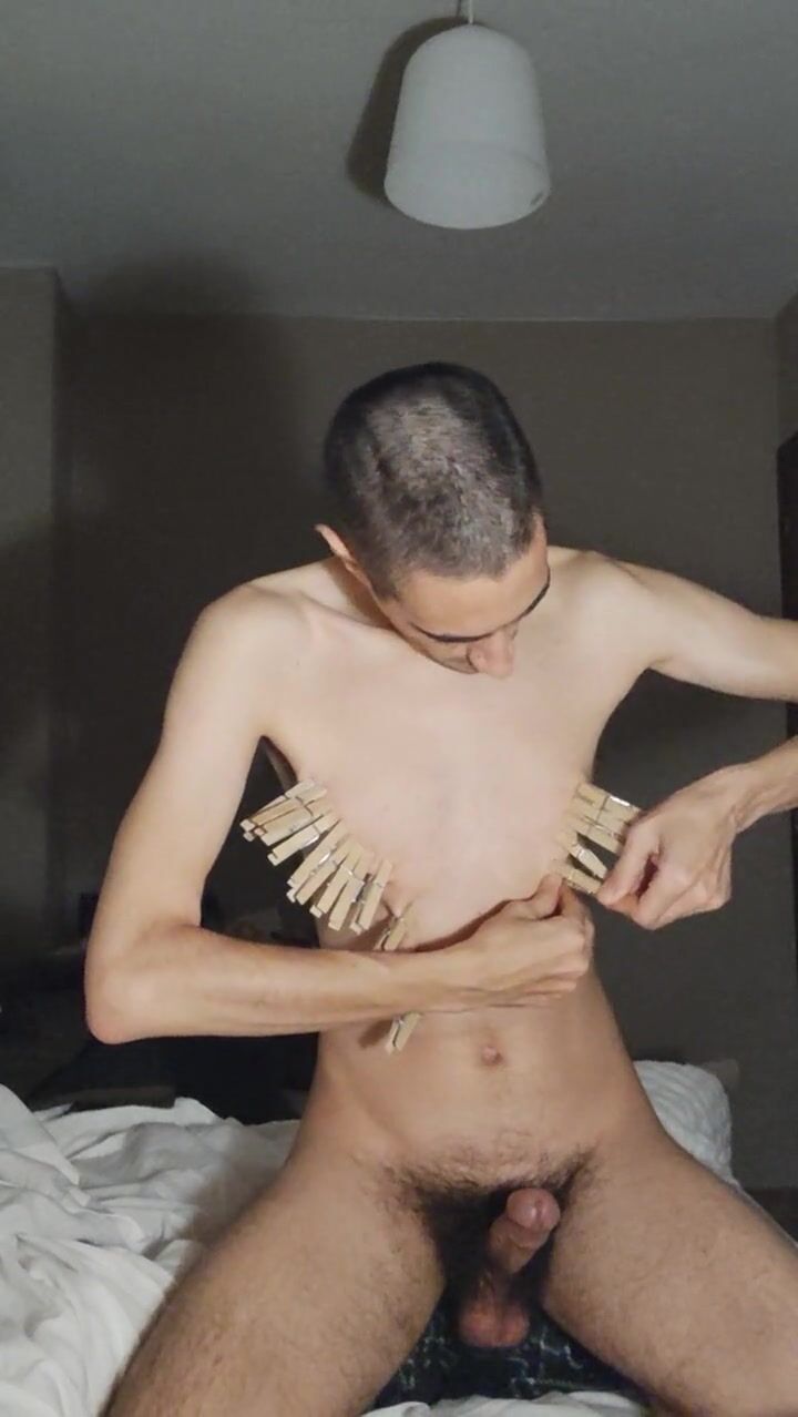 . Pain for the slave. I was told to make a short video for a friend. I put on lots of clothespins and jerk off with them. If he thinks it's too light, I might be told to do zippers and pull them...