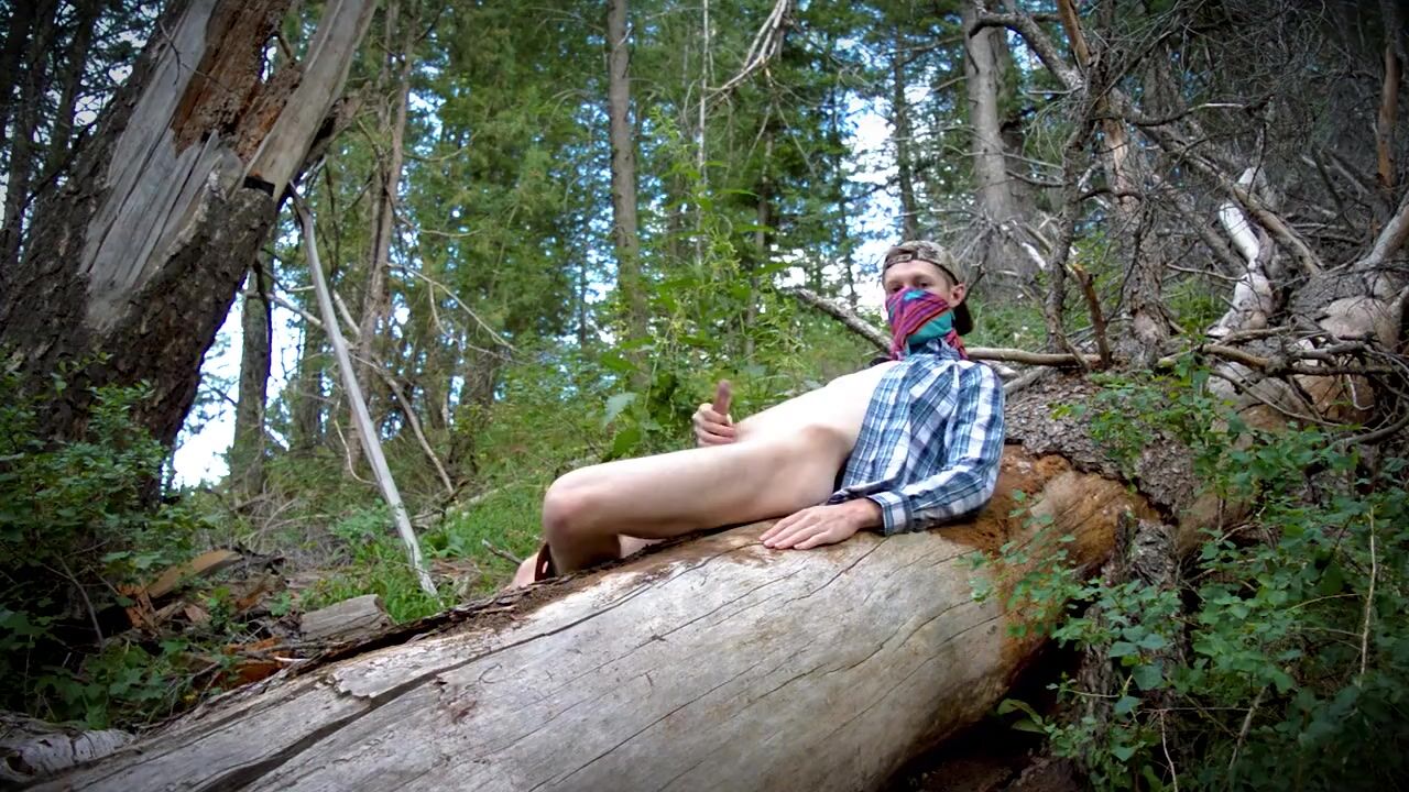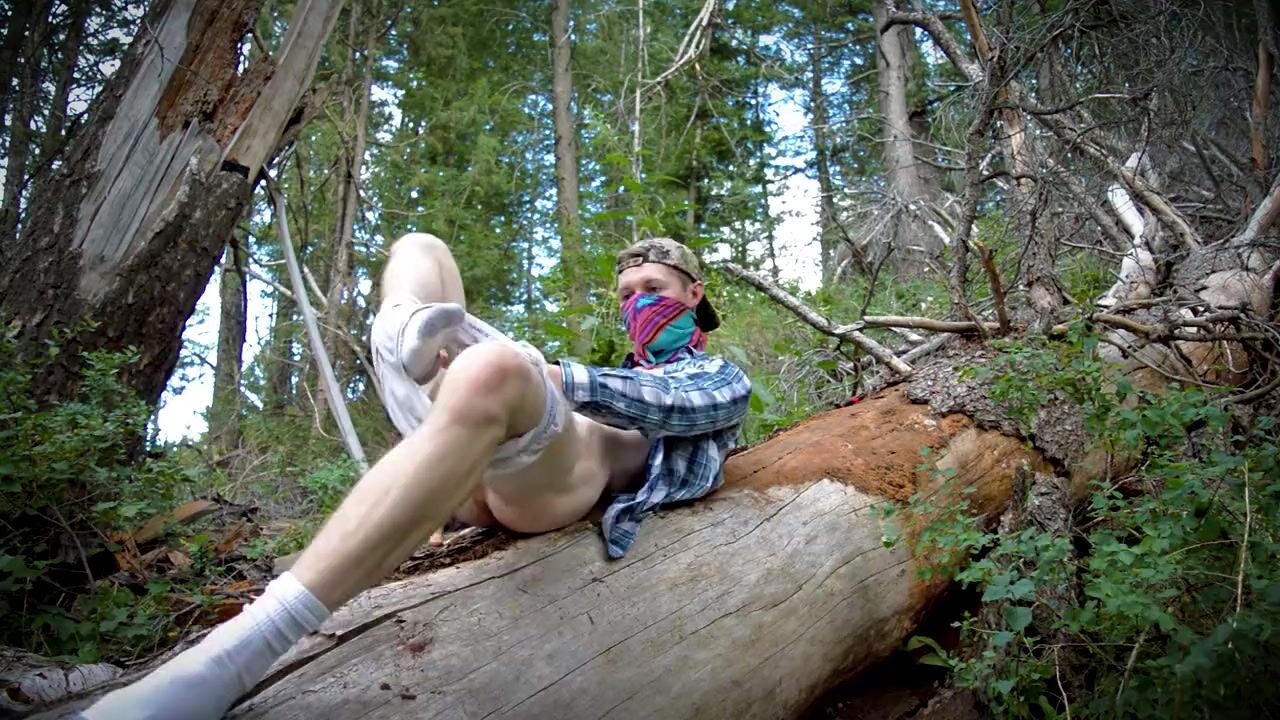 HOT COUNTRY BOY JACKS OFF ON FALLEN TREE IN PUBLIC WILDERNESS