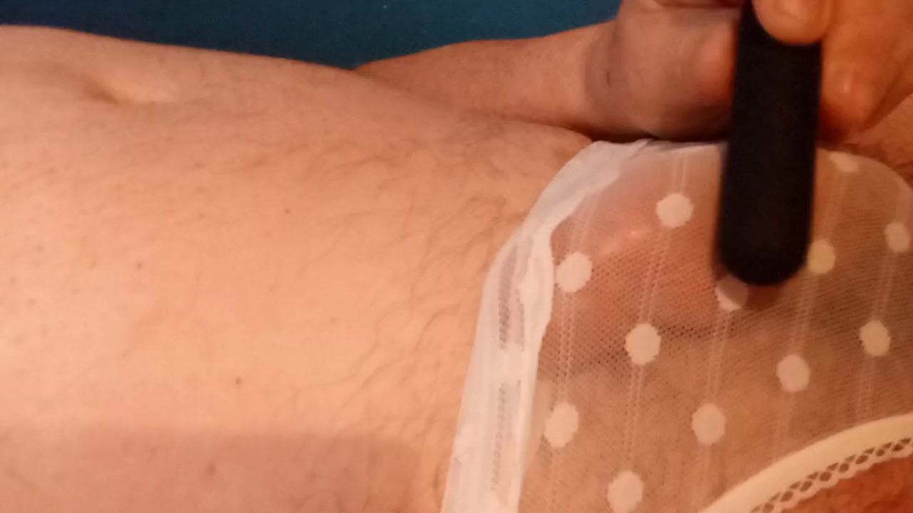 . Wearing my wifes panties but cant resist rolling my pencil vibrator over my cock and balls so so sexeeeeeeeeeee untill finally I cum mmmmmmmm nice