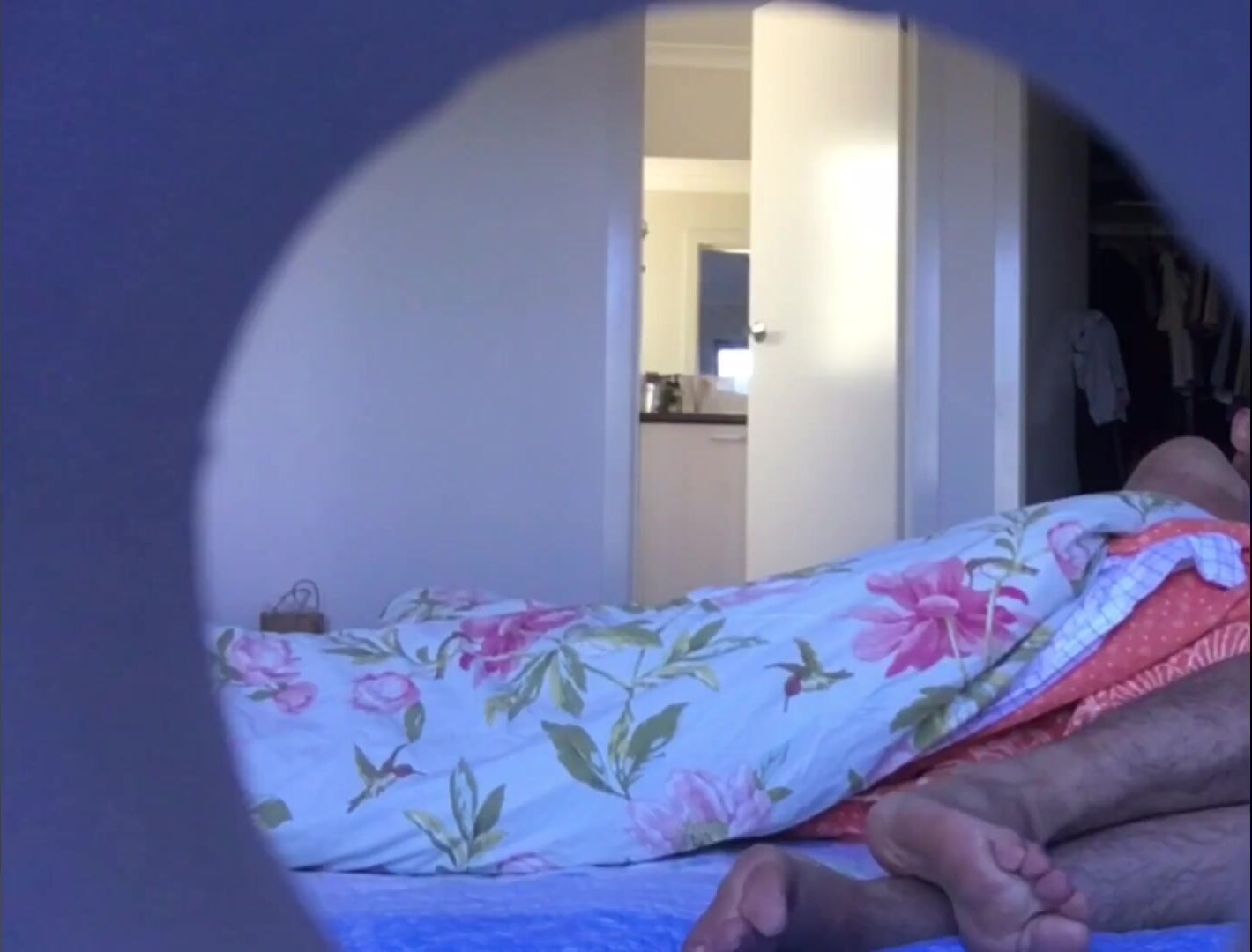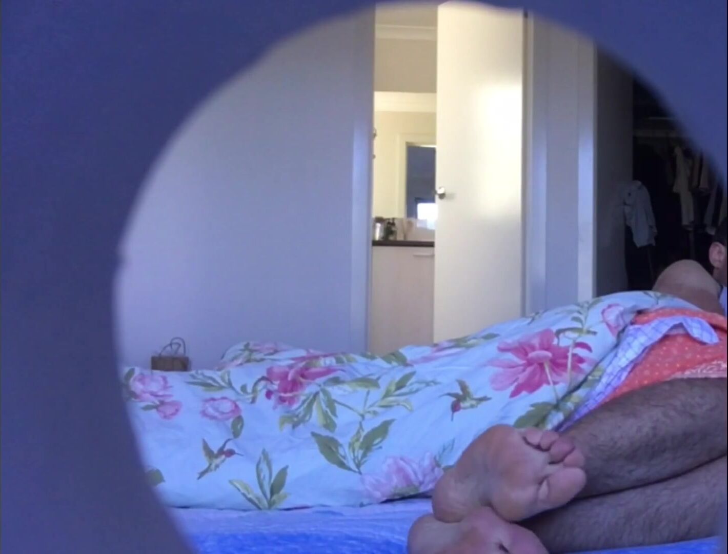 CANDID FEET CAUGHT IN BED - LONG HAIRY MALE LEGS - MANLYFOOT