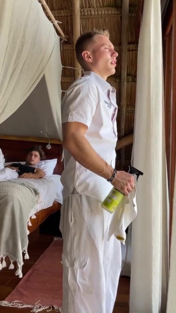CARLOS EFFORT & ELIO CHALAMET ENGULFING EVERY OTHER IN THE HOTEL ROOM