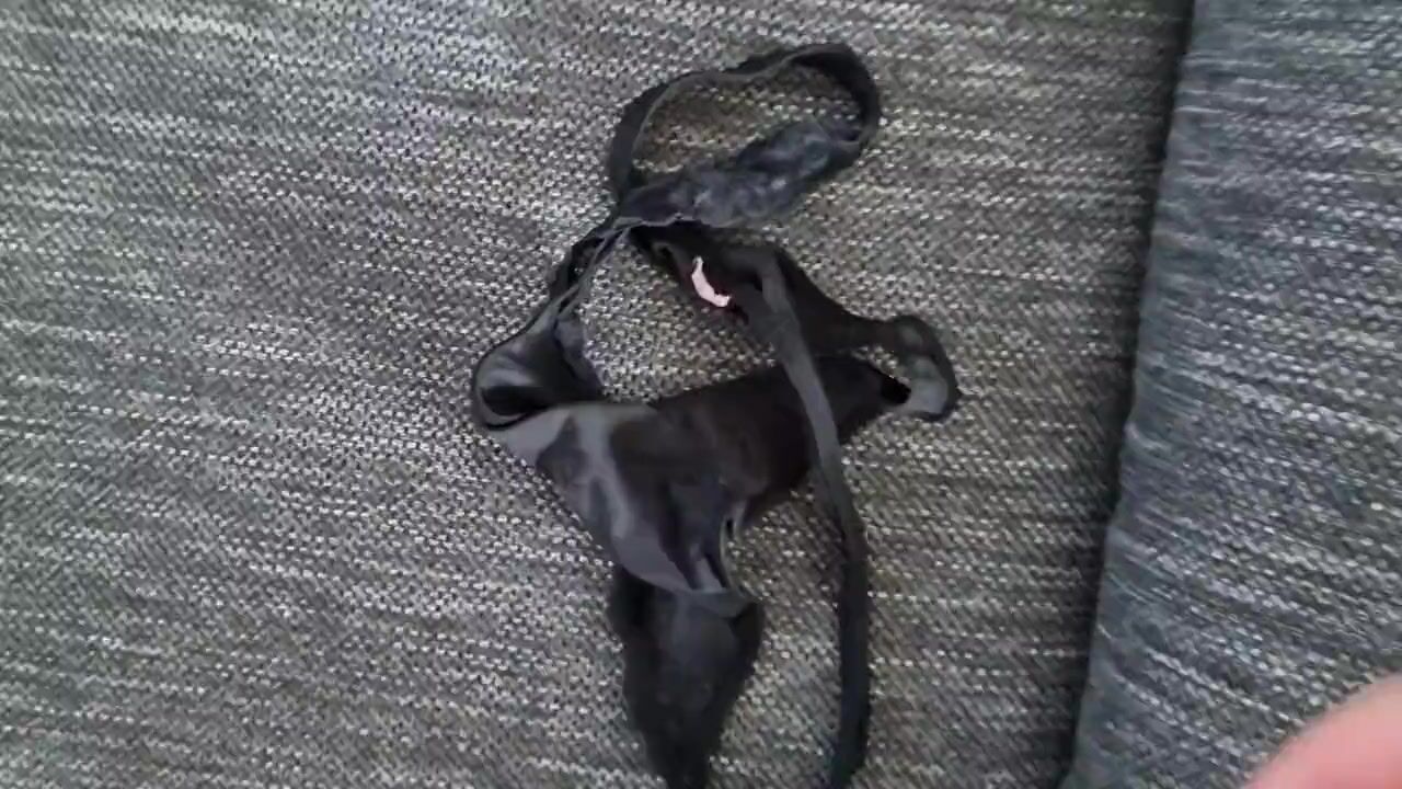 . Id used to wear some of her panties. This time I wanted to show you my favorite one. Normaly I just wear it a short time and do not cum into it. But this time I decided to cum into it.