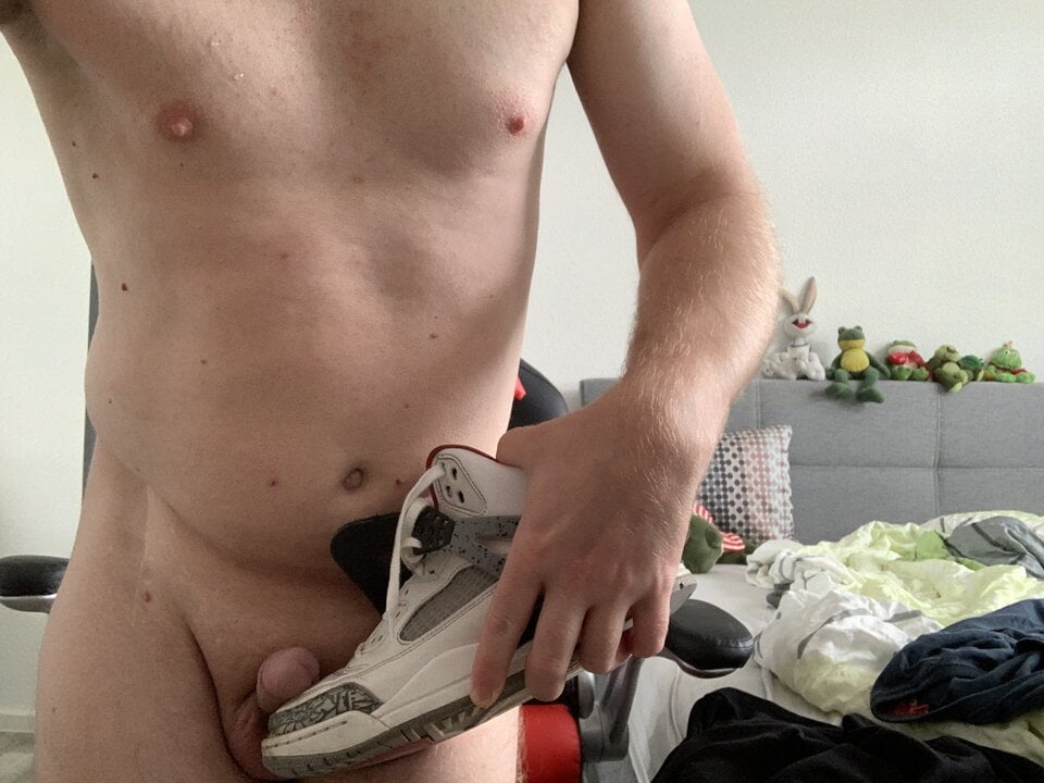 . This morning I woke up, went into the hallway and there I discovered my horny sneakers. So I grabbed them and started to wixxen horny. Faster and faster I rubbed my sneakers on my cock.
