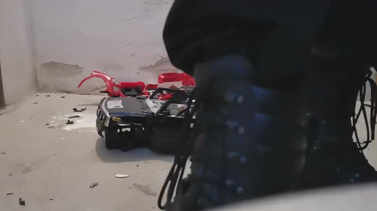 STOMPING AN OLD TOY TRUCK WITH MY ARMY BOOTS