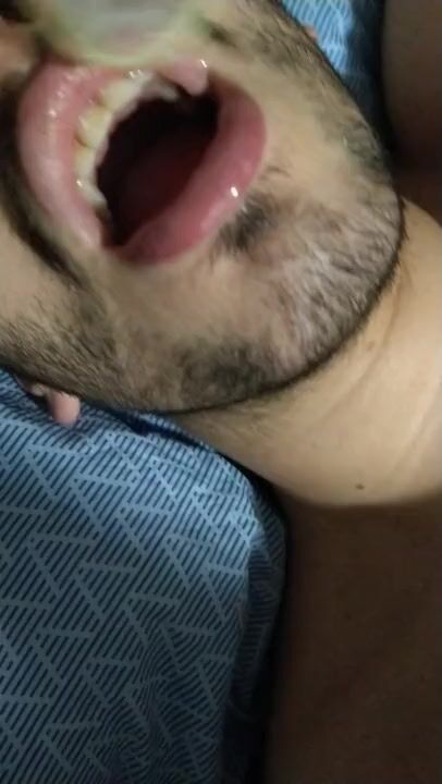 SUB DRINKS CUM FROM CONDOM AFTER BEING FUCKED BY BIG COCK