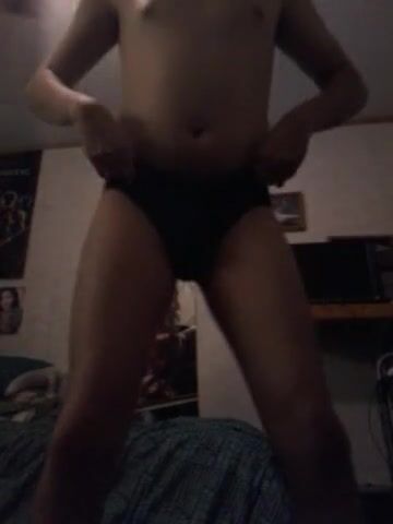 Shy gay dancing in cute panties