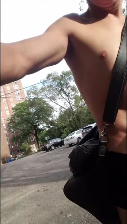 TWINK IN CHASTITY EXPOSES HIS CAGED NUB WHILE RIDING BIKE THEN GETS TOTALLY NAKED AT PARKING LOT