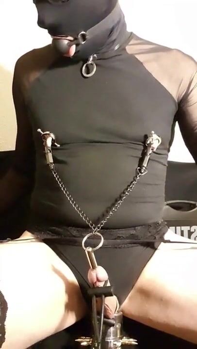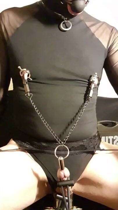 . Kinky big nippled maso slut receiving remote electro torture, bdsm, slave, crossdresser, cock and ball torture, cbt, ball stretching, sounding, urethral stretching, peehole fuck, nipple stretching, ni