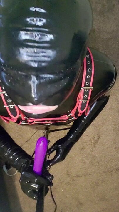 LATEX GIMP BOY SUCKS DILDO POV