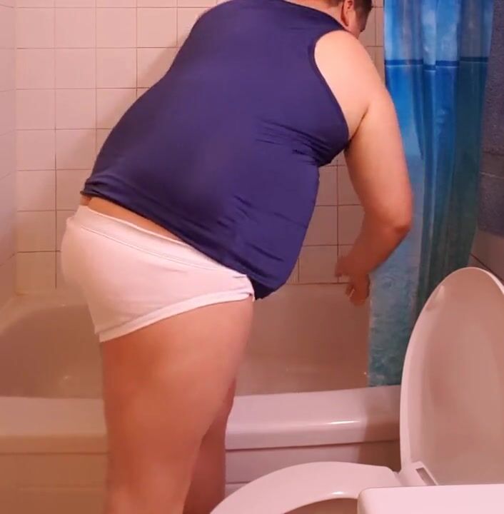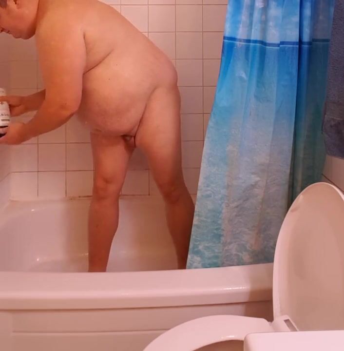 . fat round chub with a micropenis showering nude