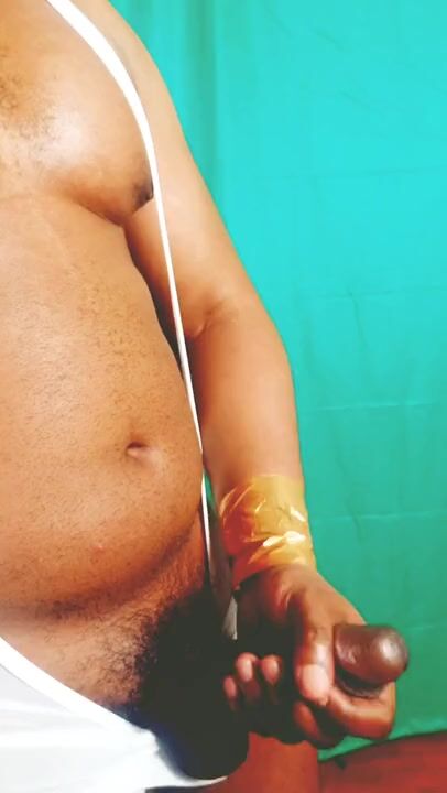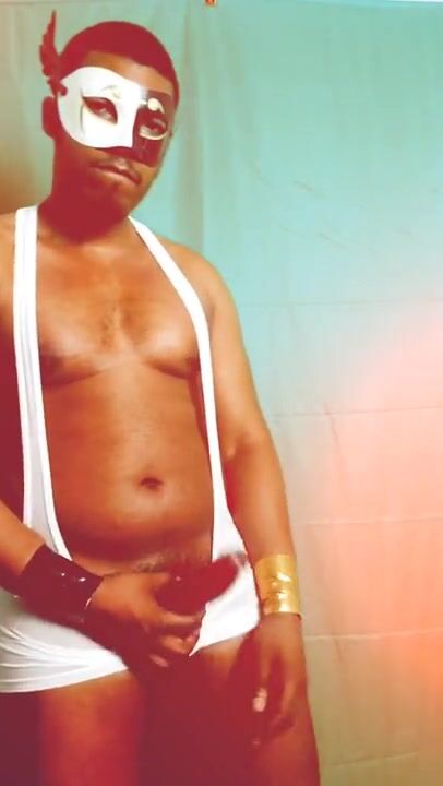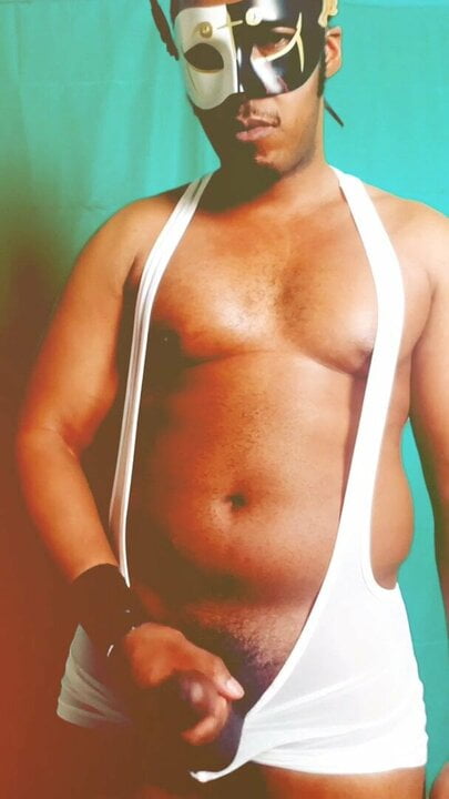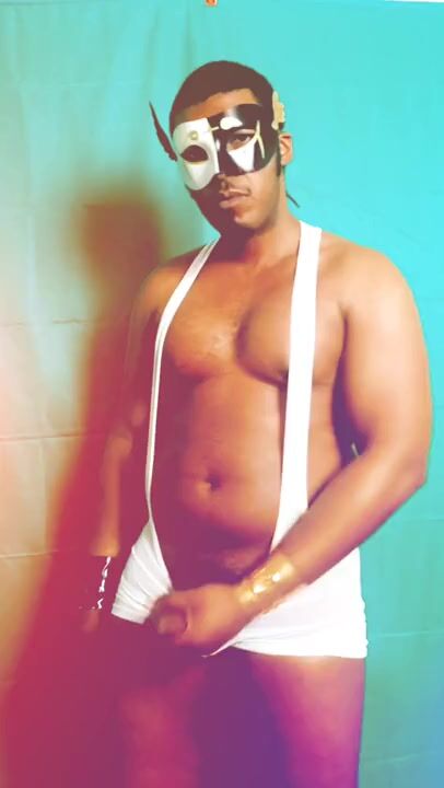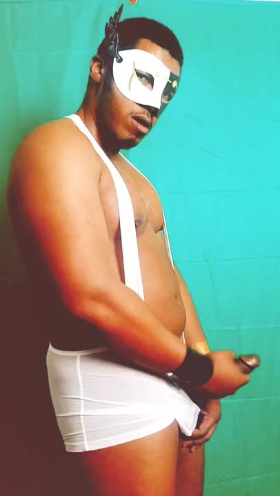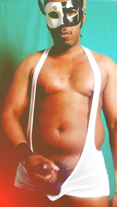. Just jerking off in a mask and singlet.