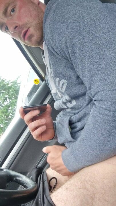 MUSCULAR GUY HAS FUN IN A CAR PUBLIC PLACE WATCHING PORNO