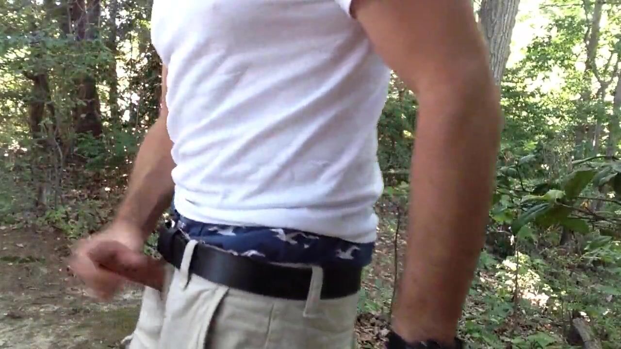 PUBLIC JERKING IN THE WOODS AND CUMMING. SHIRTLESS VERBAL