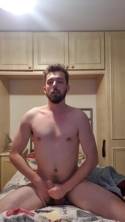 Youthful sexy chap jerks off and cum on himself - hand cum-hole
