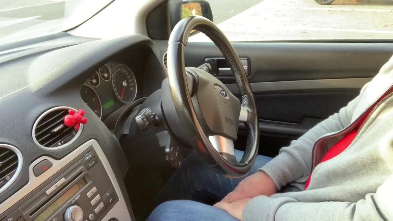 CARPARK JACK OFF AND EJACULATION IN MY RED TIGHTS HOSE PANTS