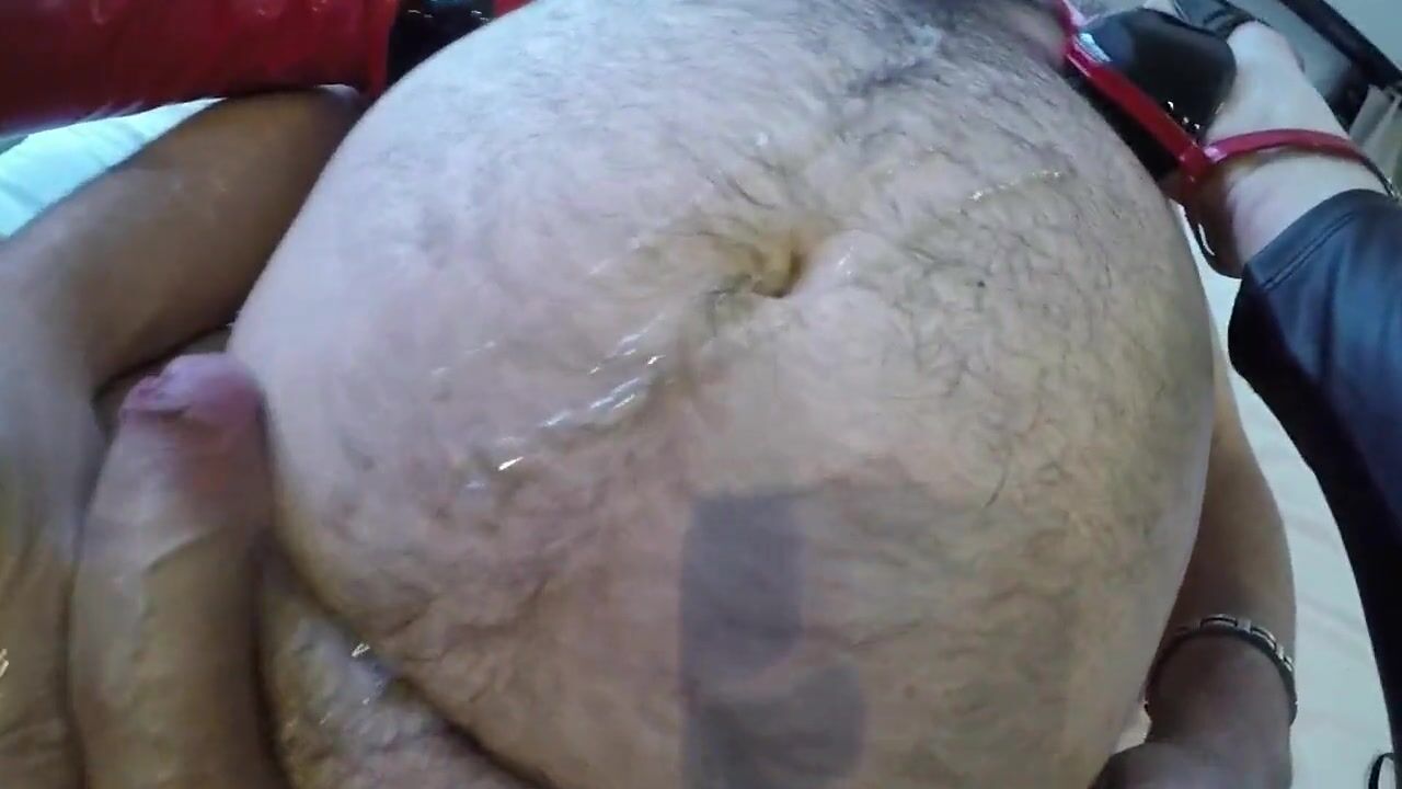 . Obese hirsute serf cum on his overweight stomach for his Dominant-Bitch