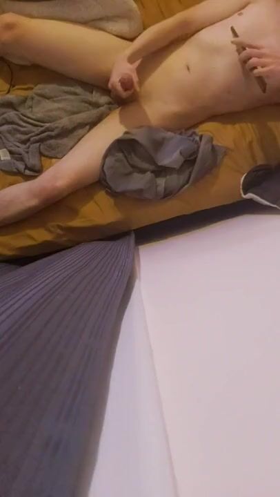 Skinny Teen Boy Jerks off on the Couch and Cums Violently on herself