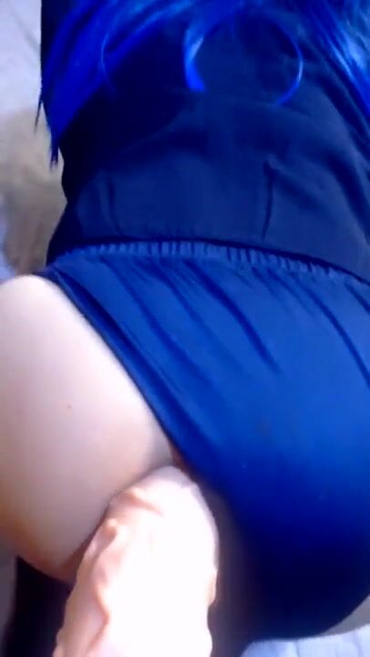 . sissy in blue suit fuck by large sextoy