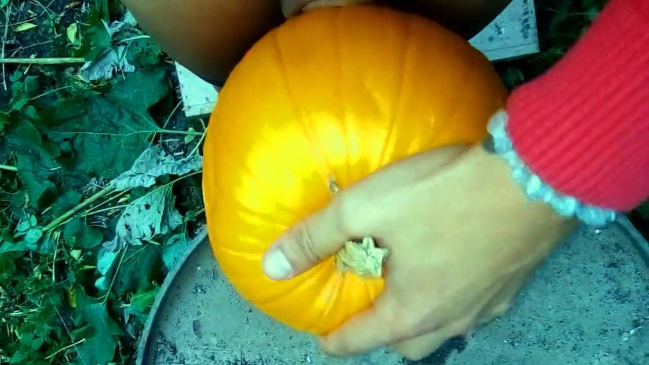 TWINK IS HARD PUMPING A PUMPKIN IN THE GARDEN