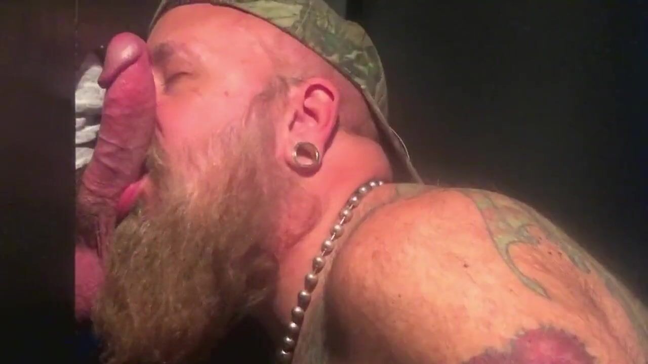 Military veteran at gloryhole getting his cock sucked