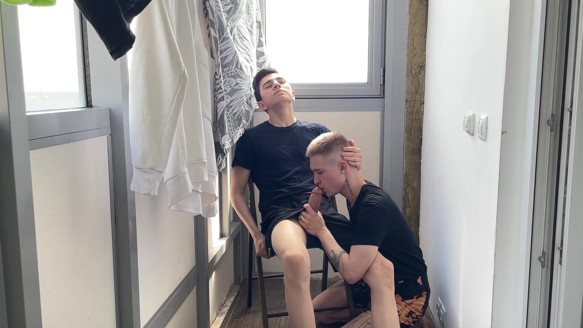 TWO INEXPERIENCED GUYS FUCK ON THE BALCONY
