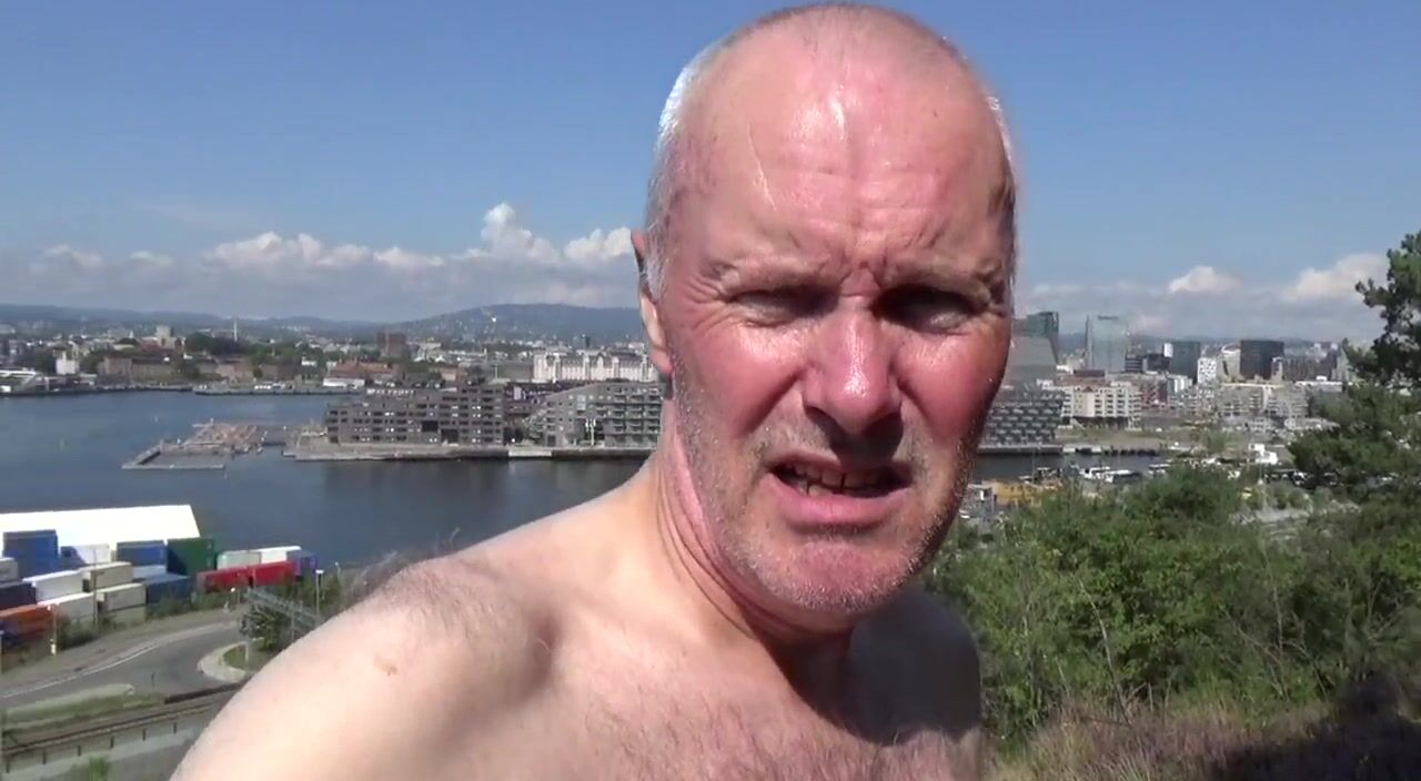 . The pervert 64 year old exhibitionist Ulf Larsen in natures garb with but-plug, jerking off in public in the center of Oslo, Norway, showing his hairless and Viagra-stuffed ramrod for everybody that pass by!