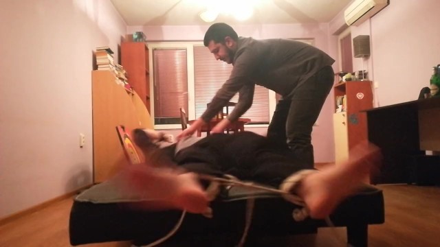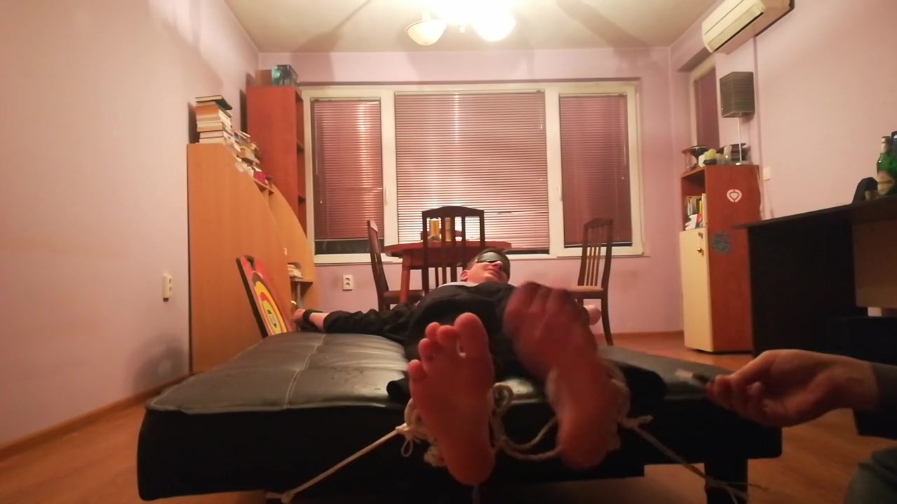 HOT GUY FEET TICKLE TORTURED IN SNEAKERS, BLACK SOCKS AND BARE FEET
