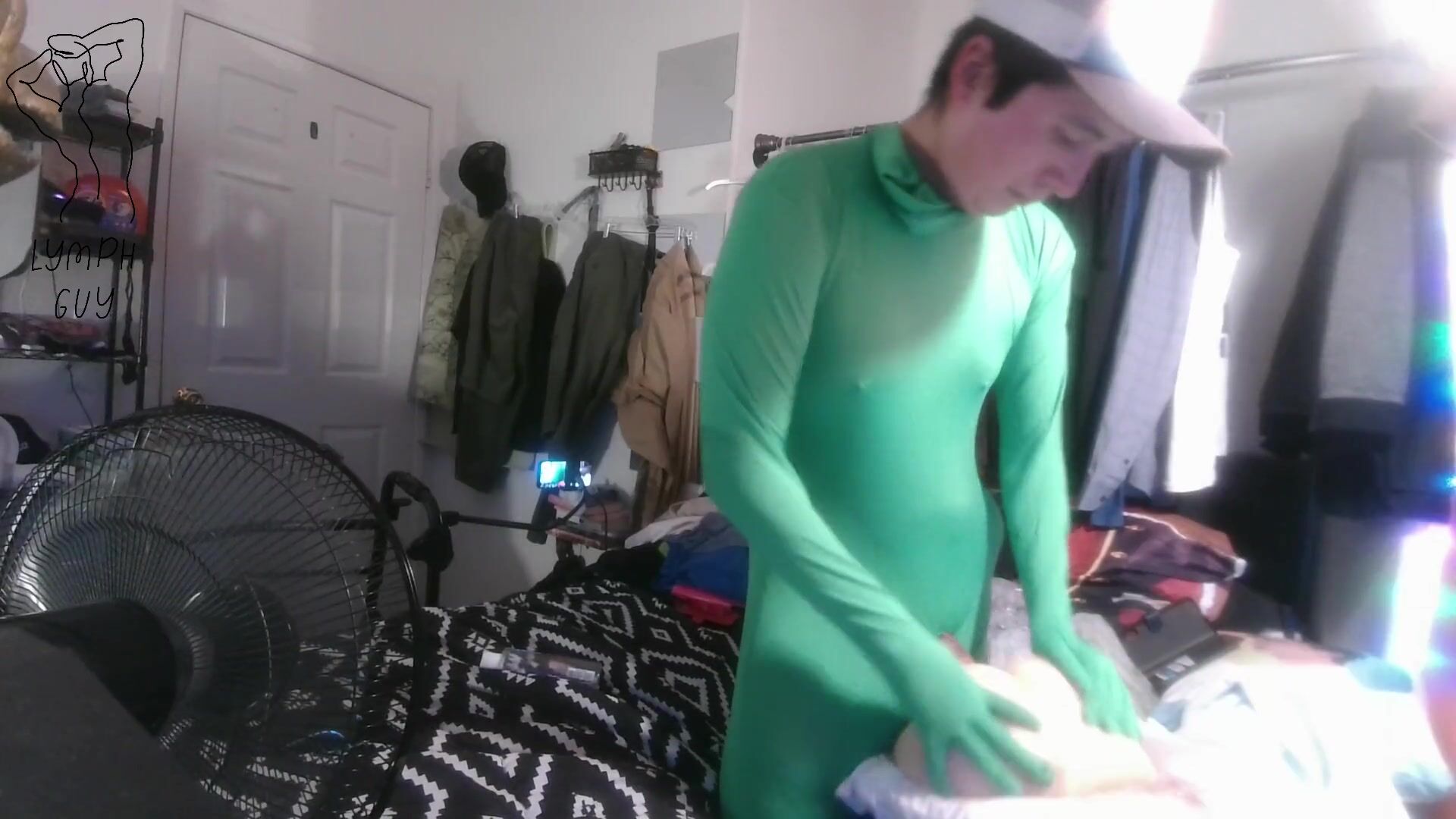 DISABLED GAY IN TIGHT SPANDEX BODY SUIT CUMS