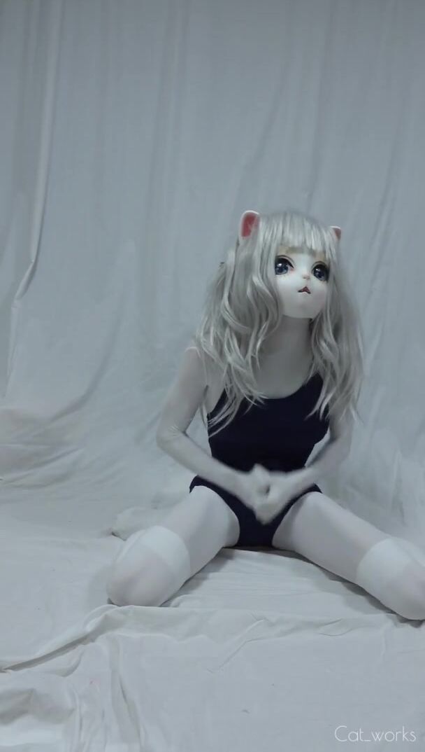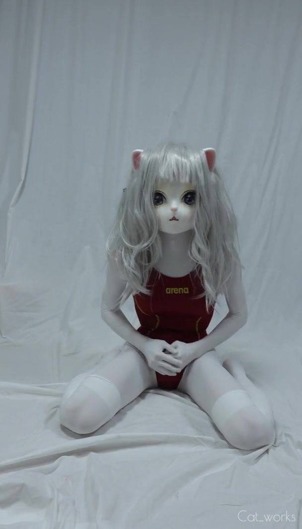 KIGURUMI ZENTAI CAT WEARING SWIMSUITS CUMS TWICE