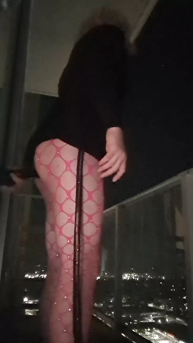 . Beautiful night to train my sissy hole out on the balcony for all the city to enjoy