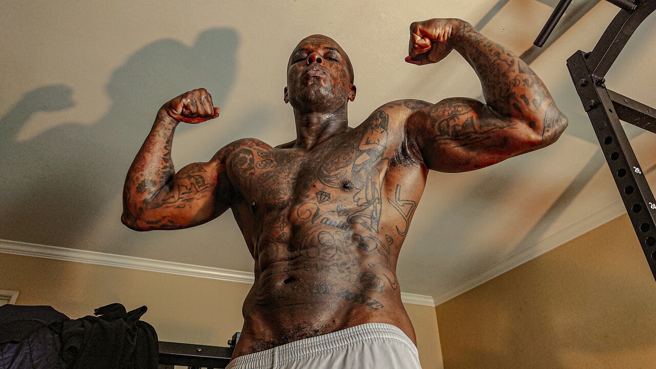 . Tall Dark Chocolate Muscles Tattoos Hairy BBC Hallelujah Johnson Masturbating solo close up big black hairy Johnson Masturbating