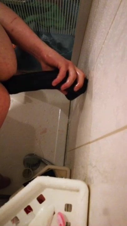 HUGE BLACK DILDO FUCKING PUMPING IN THE BATHROOM