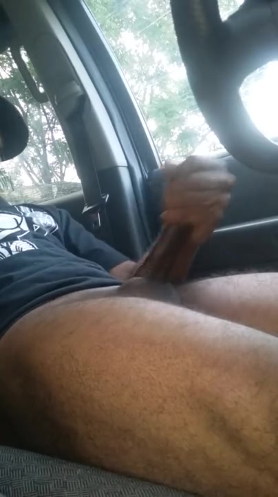 Muscular guy has fun in a car public place watching porno