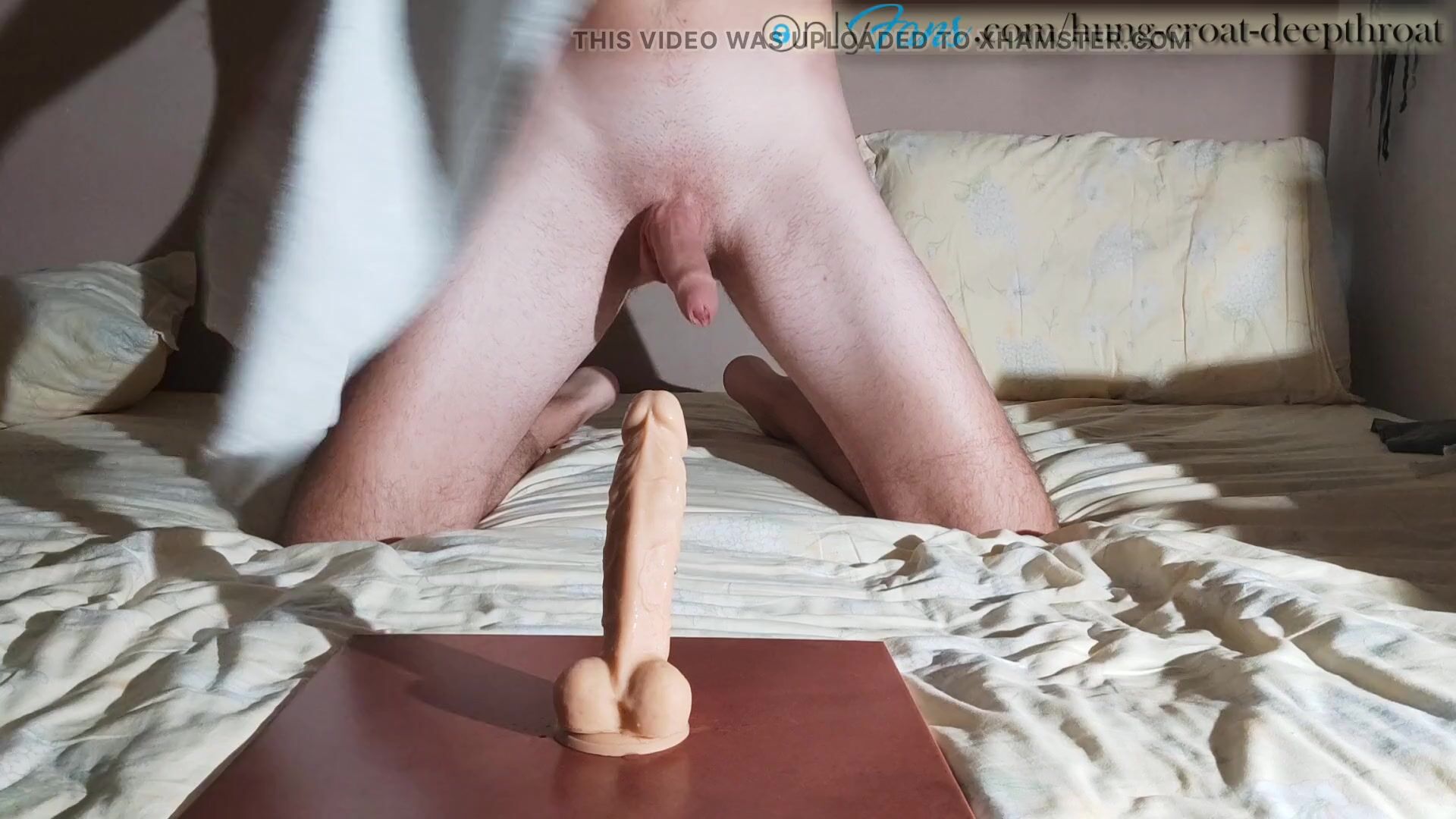 INEXPERIENCED CROAT CHOKING ON A BIG DILDO WHILE HARD