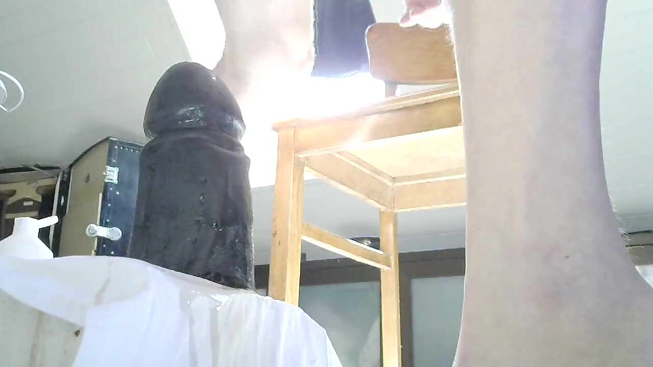 . Going down on a big toy with the balls stretched feels so good.