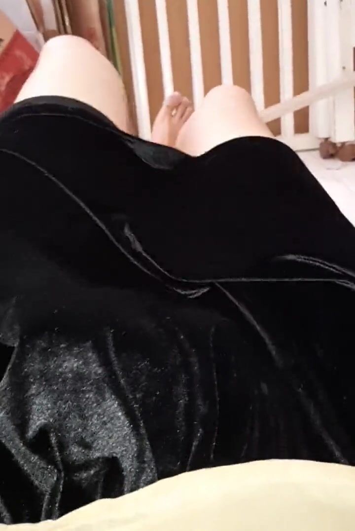 SWEATING AND CUMMING WEARING WOMAN BLOUSE AND SATIN VELVET SKIRT