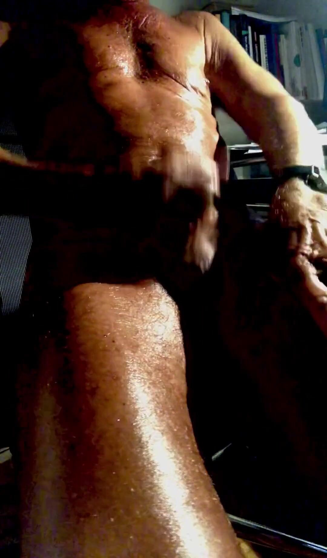 . self massage, brown from the sun, oily und slippery