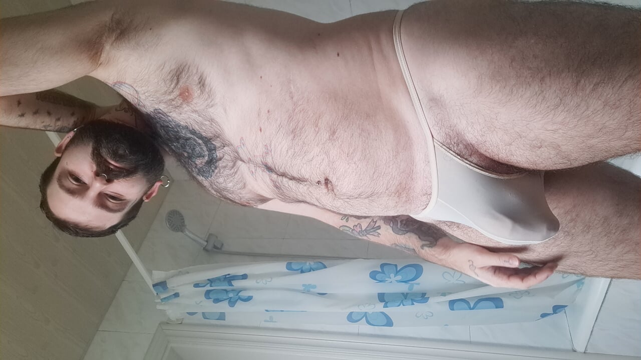 . The furry bear gets naked to take a hot shower. shows us her hairy body. He loves to show his cock. He has a big hairy ass and the water runs down his big cock. His body dries up and begins to get hard. he jerks his big cock. He shows us his big ass with the thong and his big bulge.