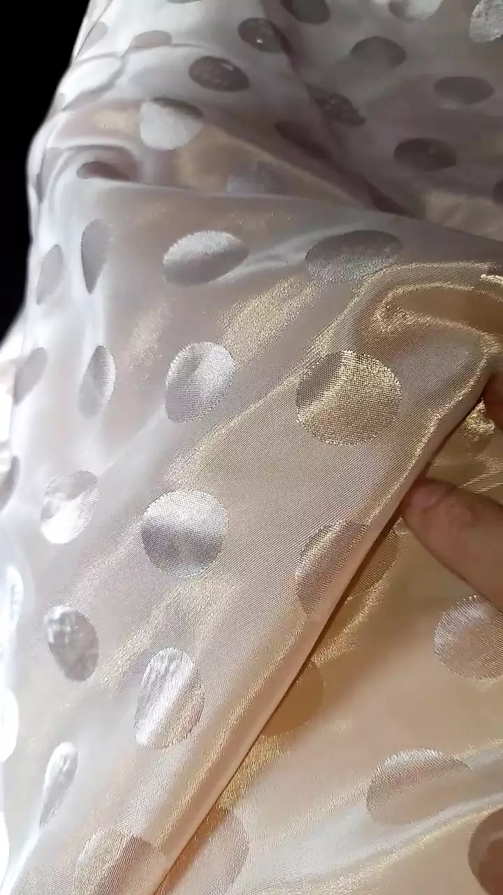 ASIAN CROSSDRESSER CUM WEARING SATIN POLKADOT LONGDRESS