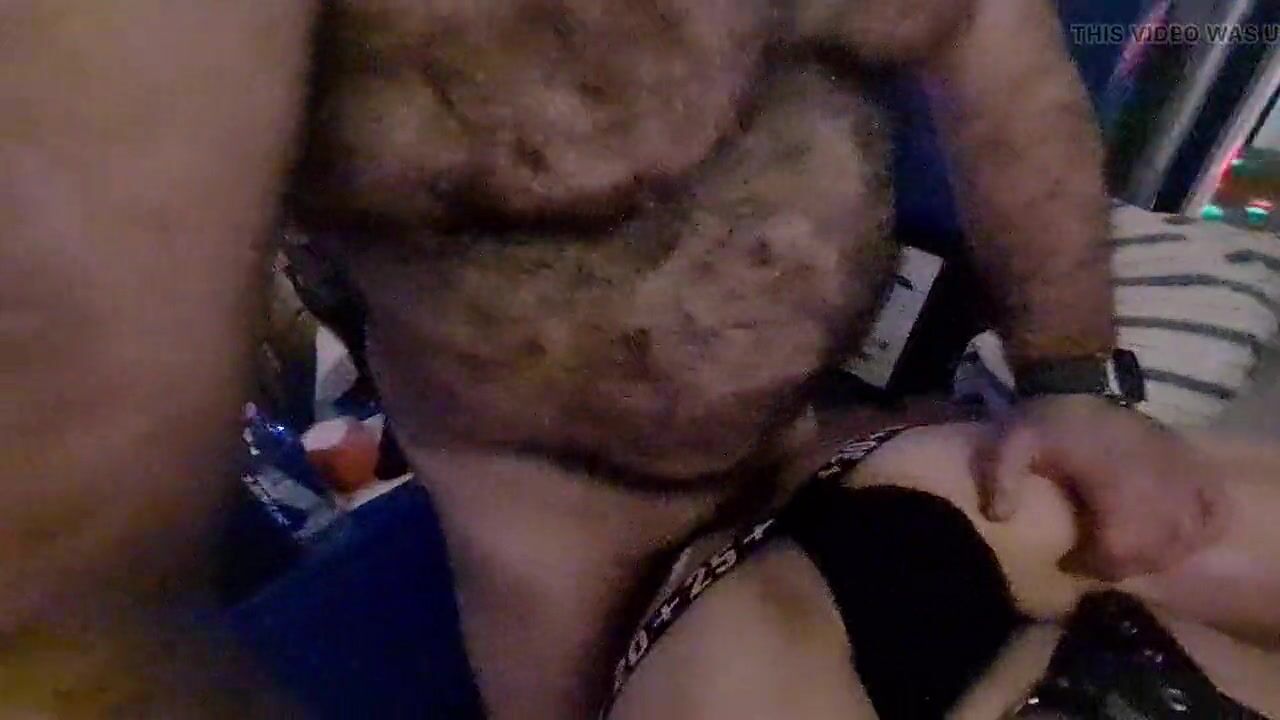 . Hairy daddy bear barebacks smooth guy ass. Horny fuck with boy in harness and jocks