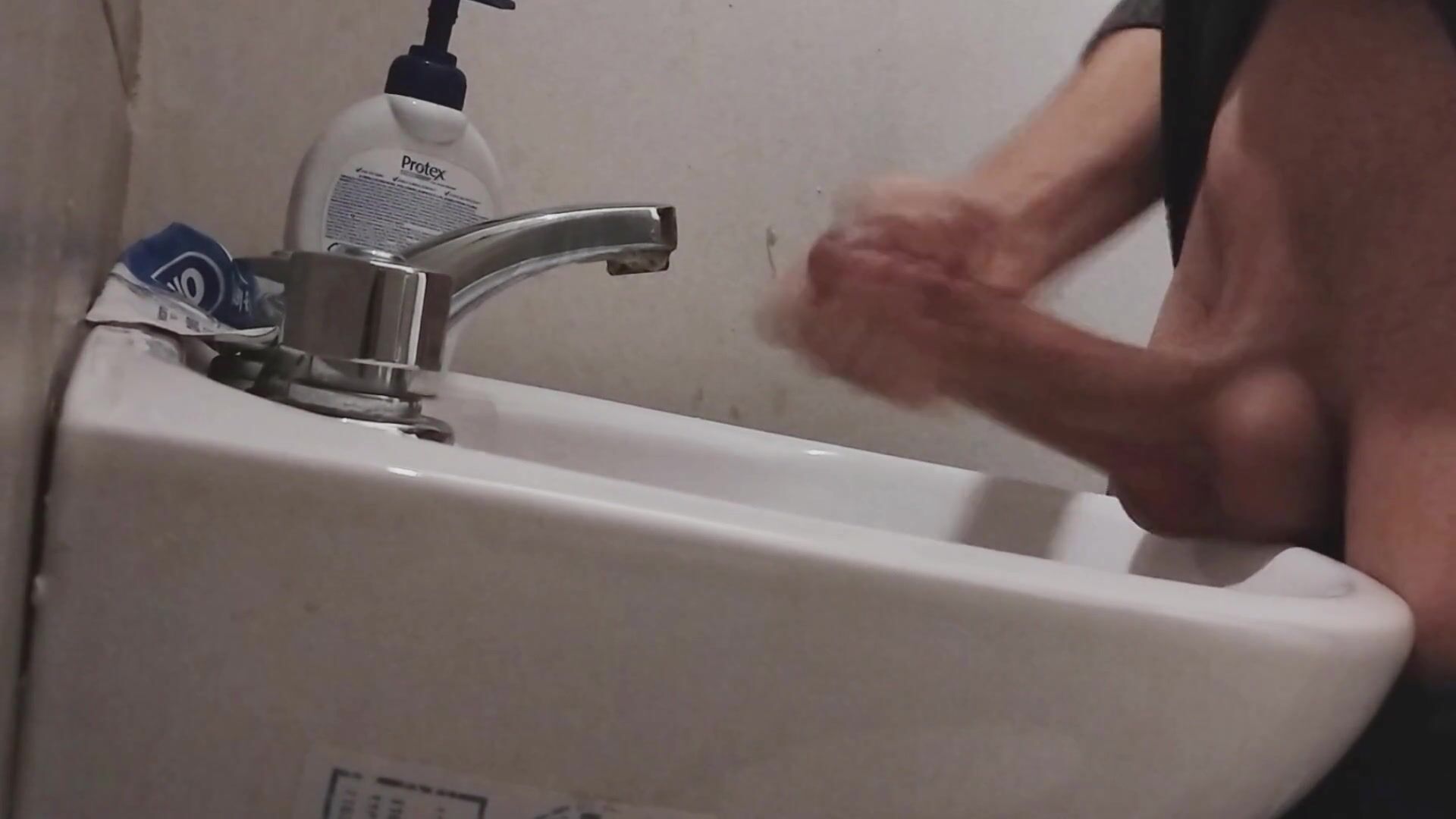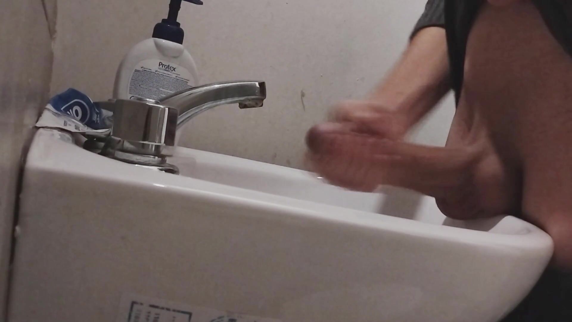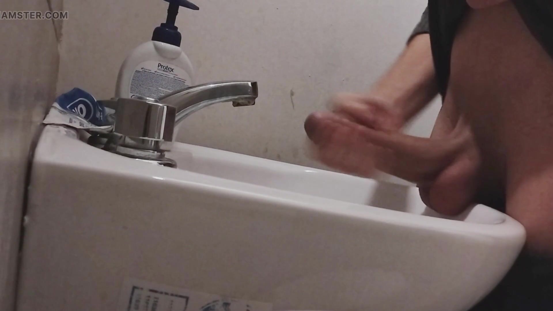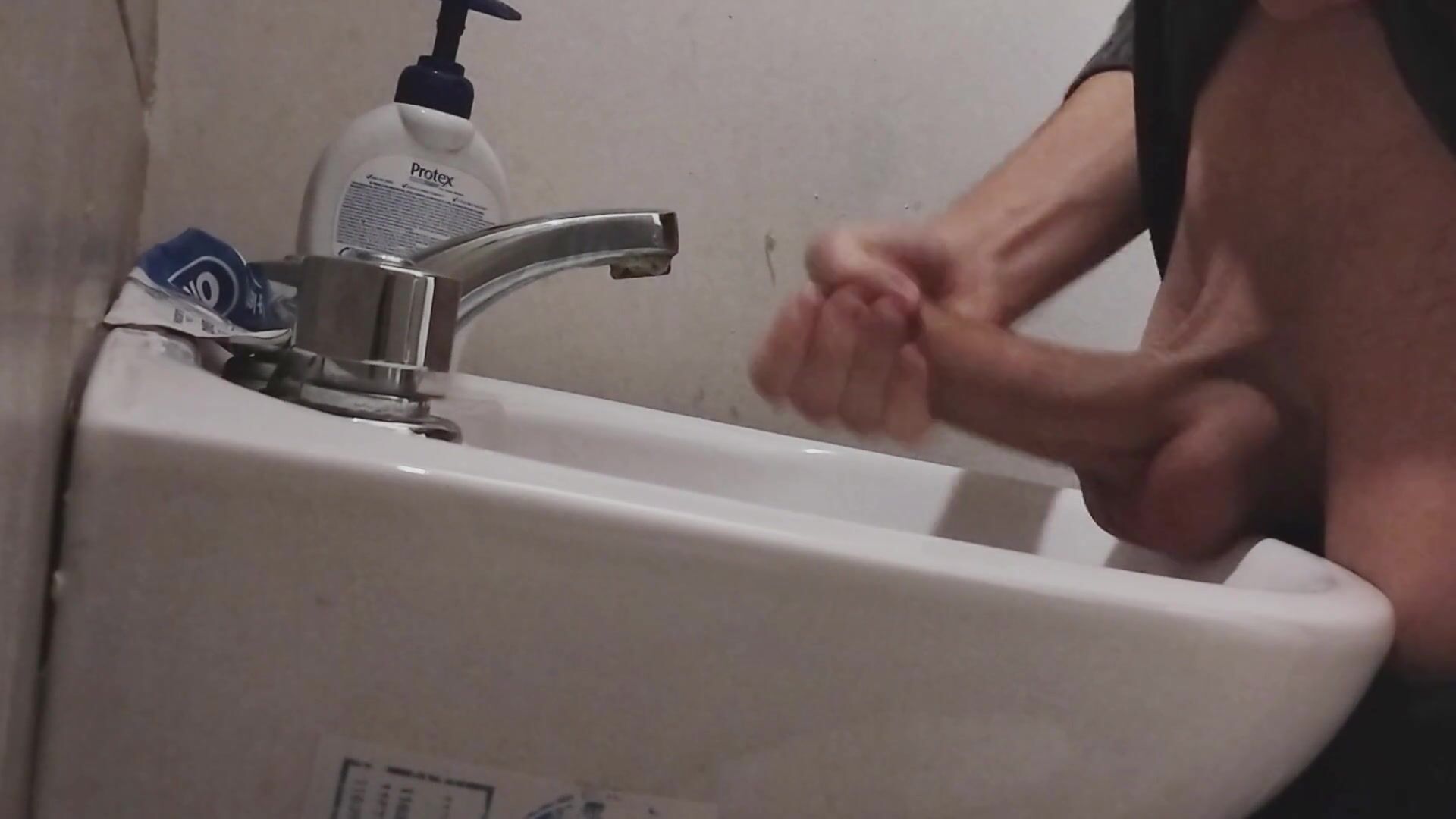 I REST MY BALLS ON THE SINK GETTING MY COCK READY FOR A HUGE CUMSHOT
