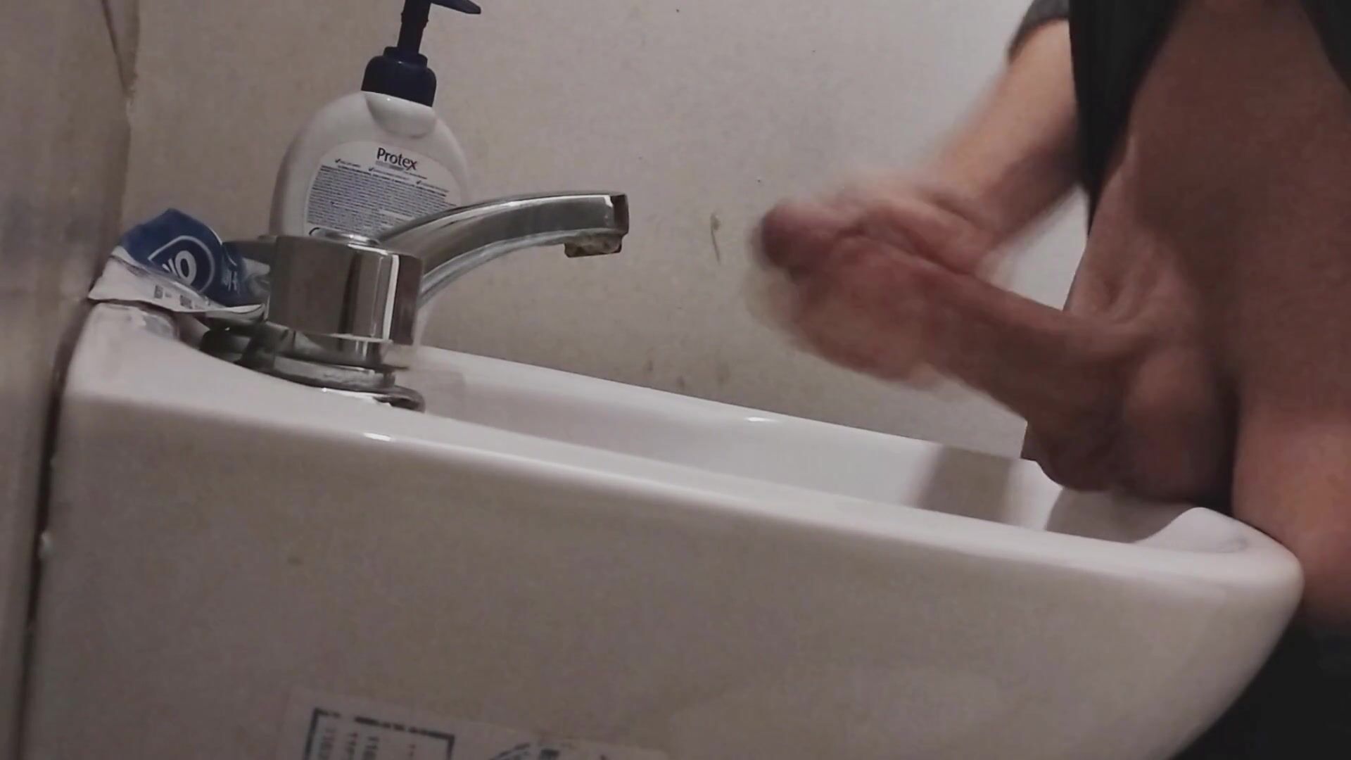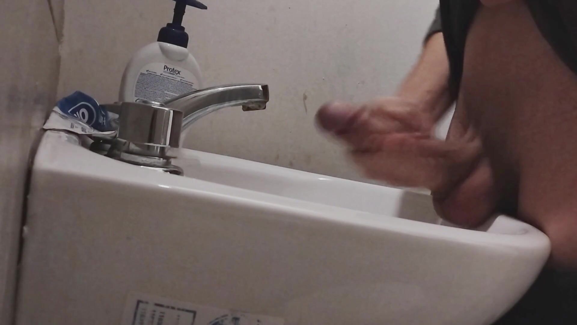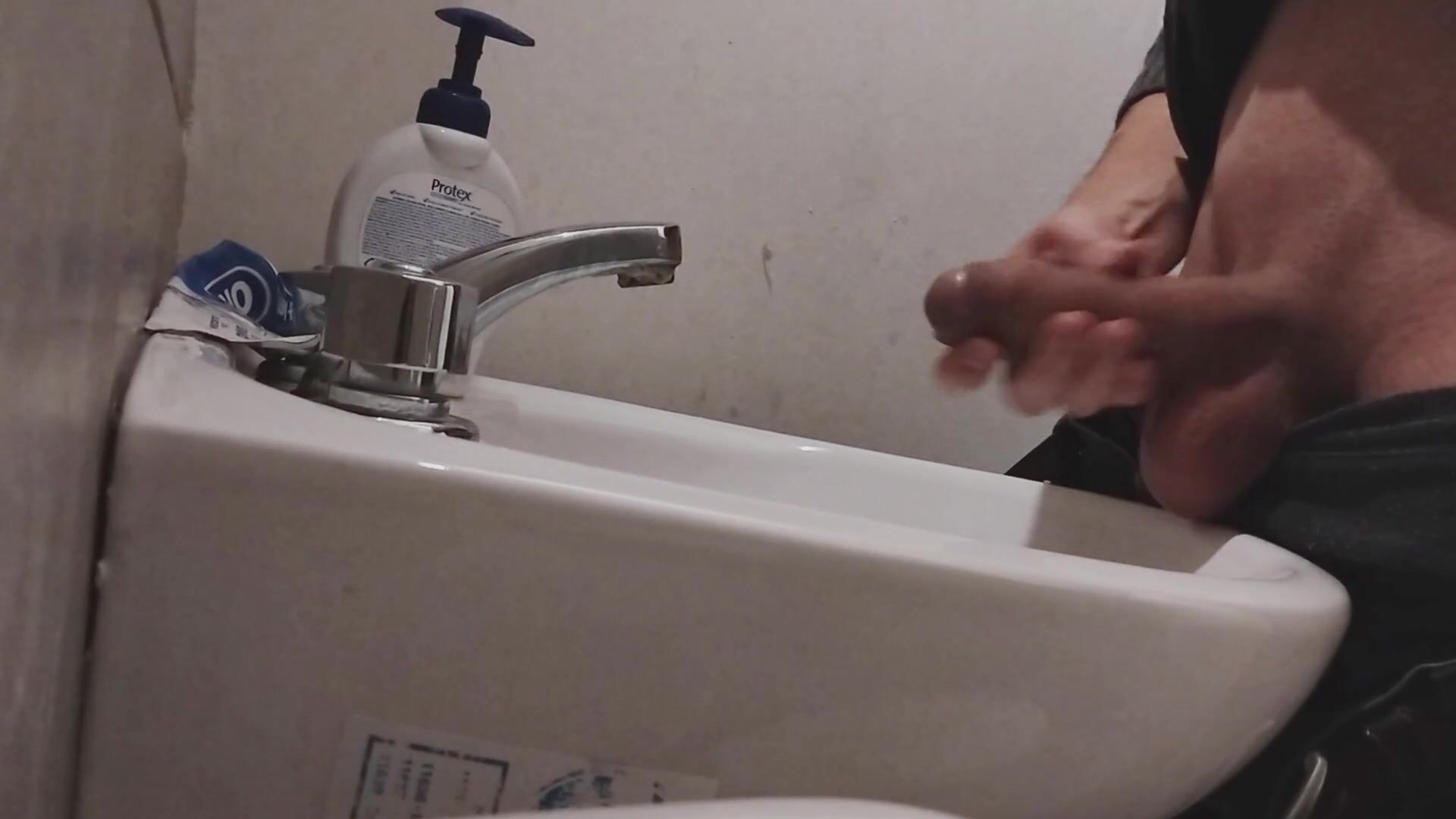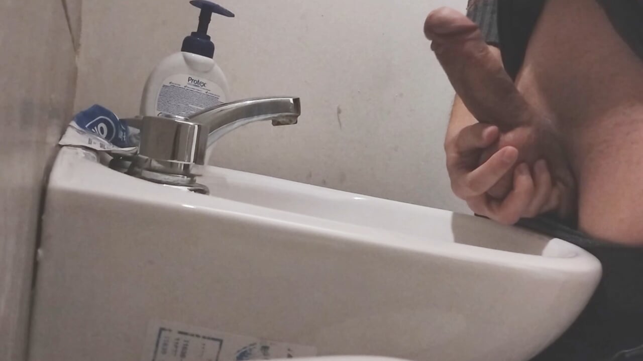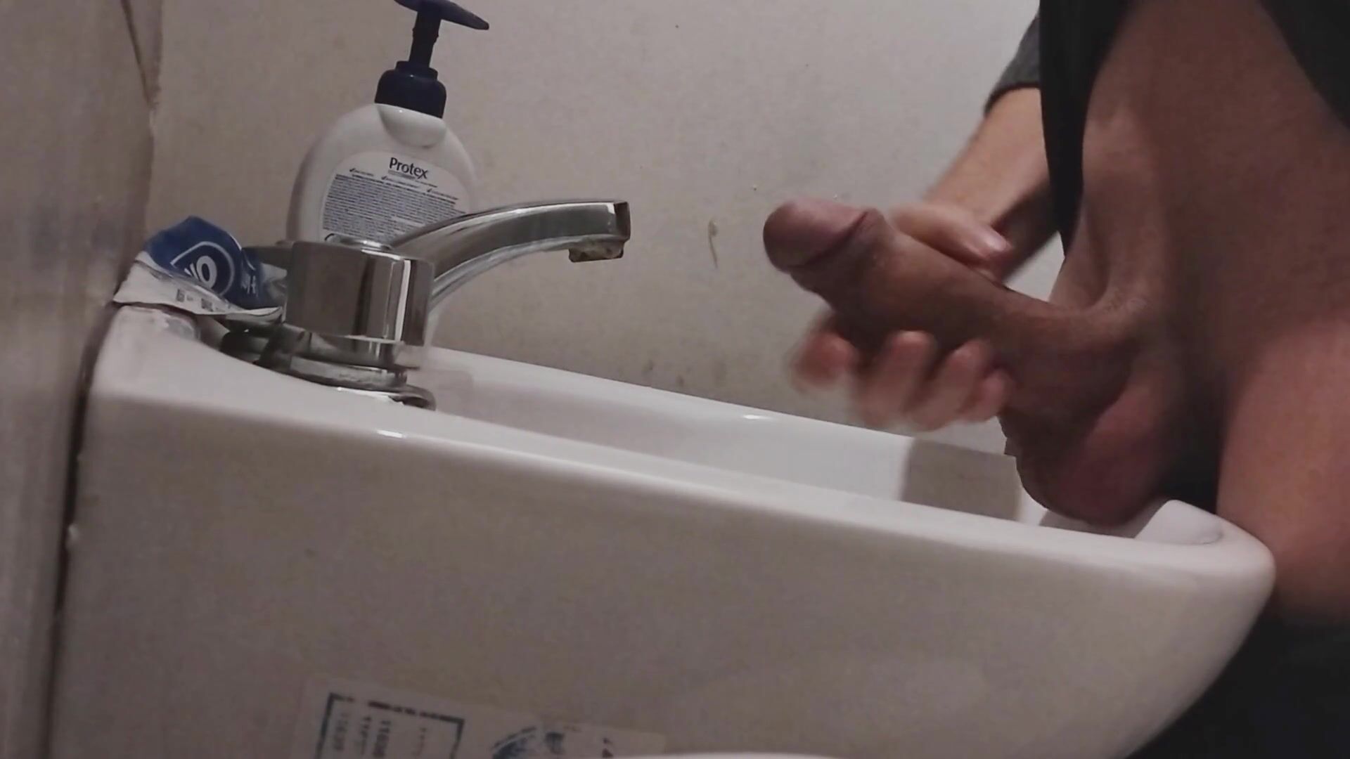 I REST MY BALLS ON THE SINK GETTING MY COCK READY FOR A HUGE CUMSHOT