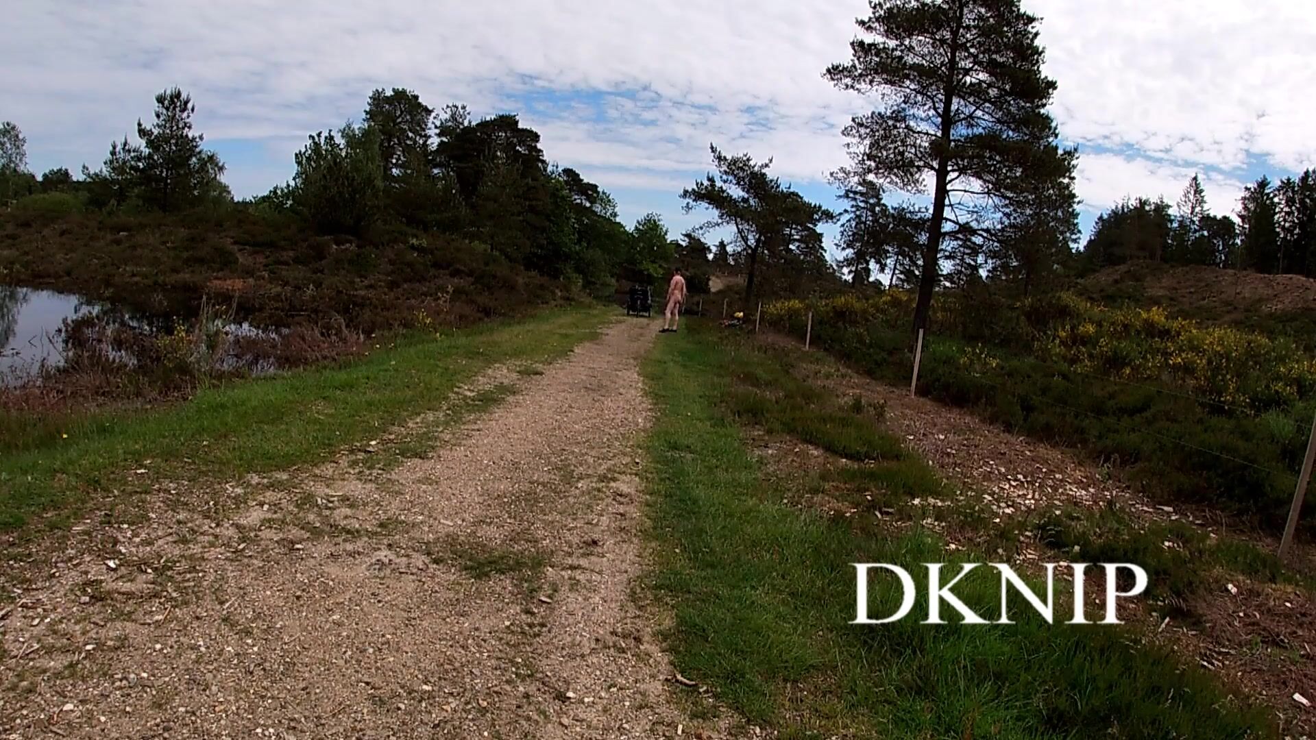 . nudist goes for a bike ride in the forest