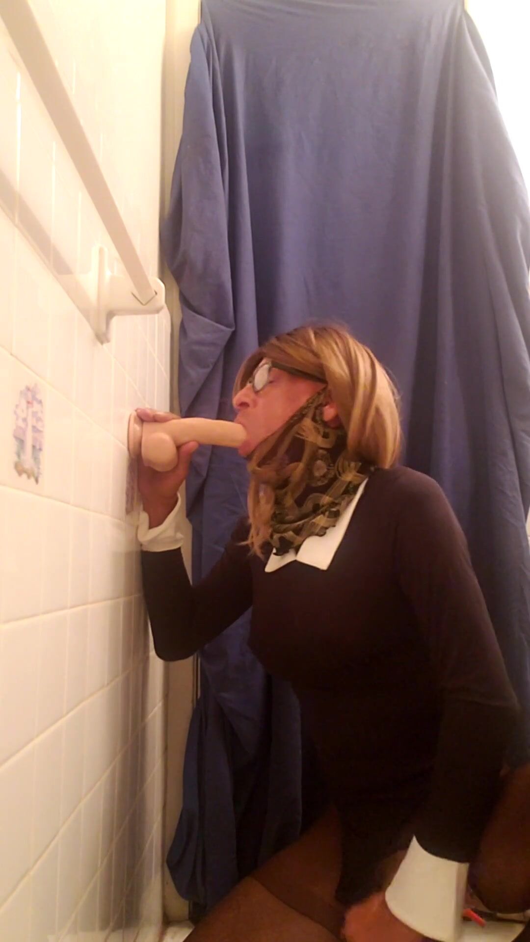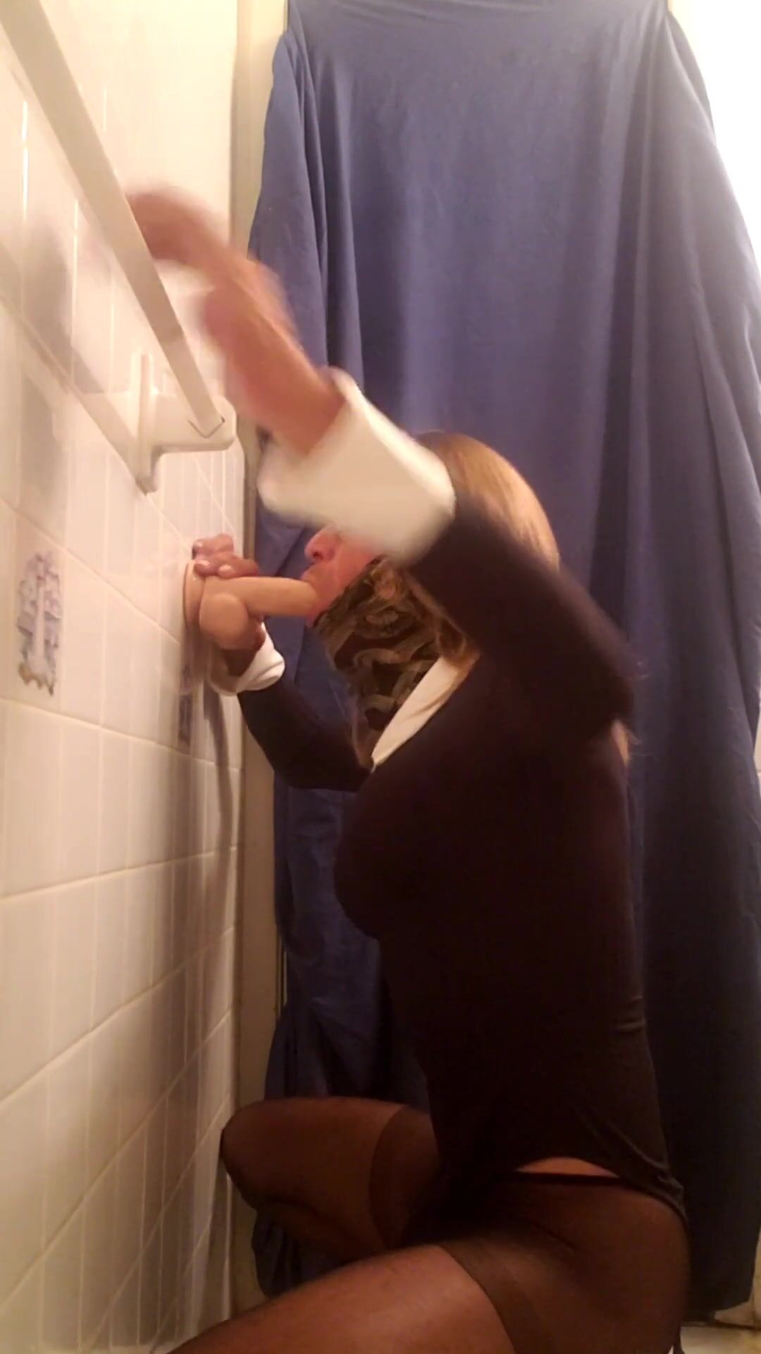 SEXY SANDY TAKES A DIDLO STANDING AND CUMS