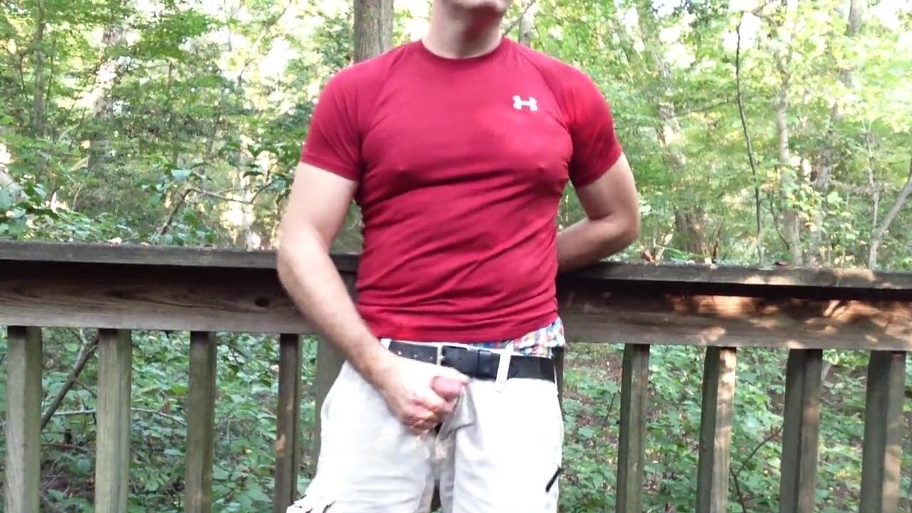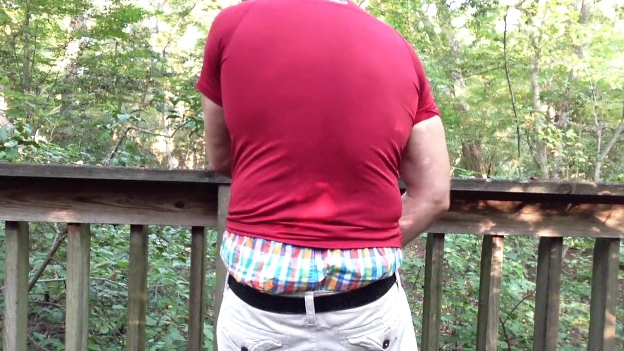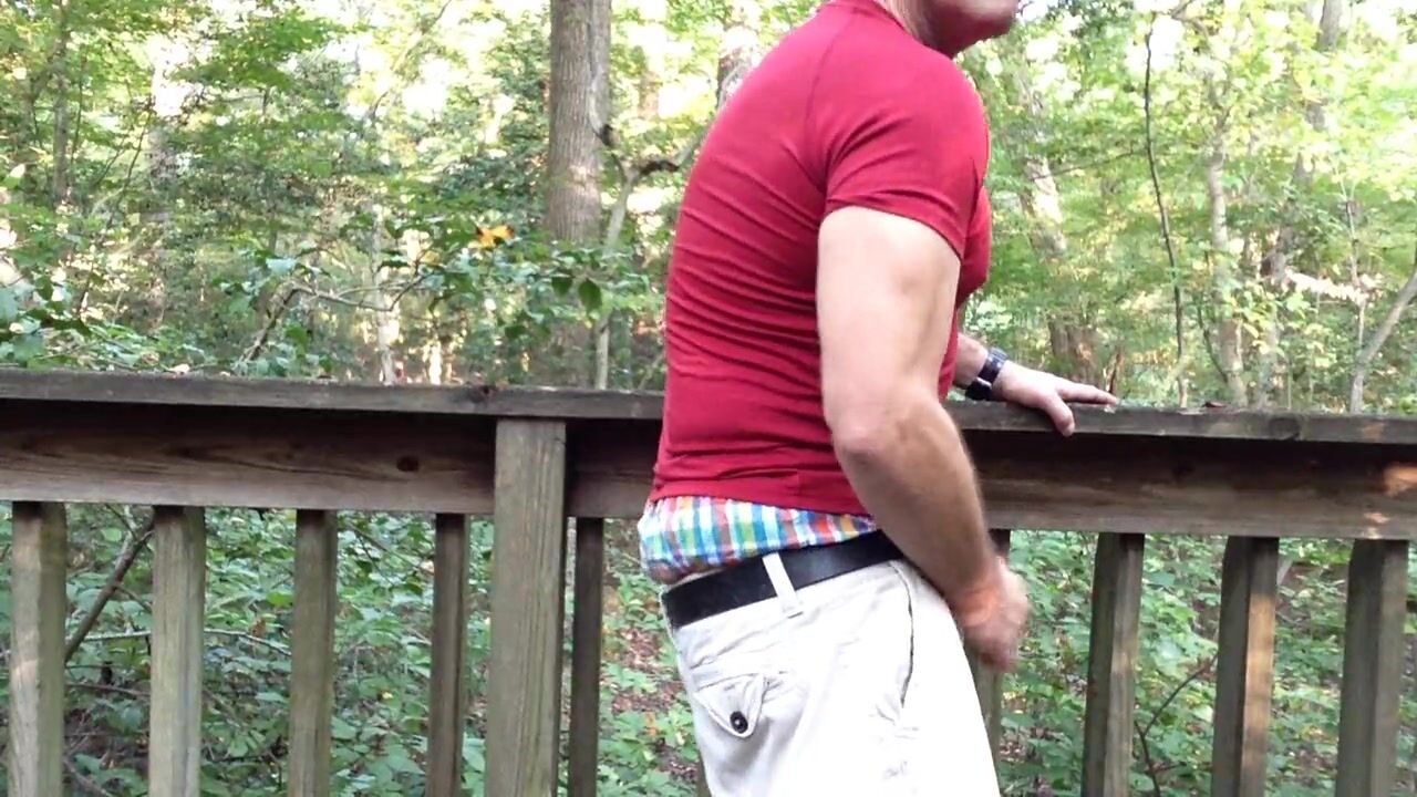 . Jerking off in the woods on a public walkway. Sagging in my AE boxers and verbal masturbation. This is a way-back video in my cargo short, Casio Watch days. It was so hot outside, I could barely get a proper erection. haha